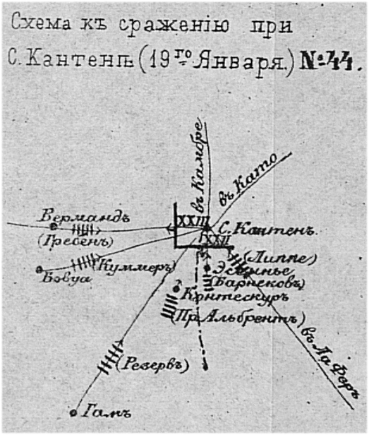 Карта-схема битвы при Фрауштадте, 13 (3) февраля 1706 года
