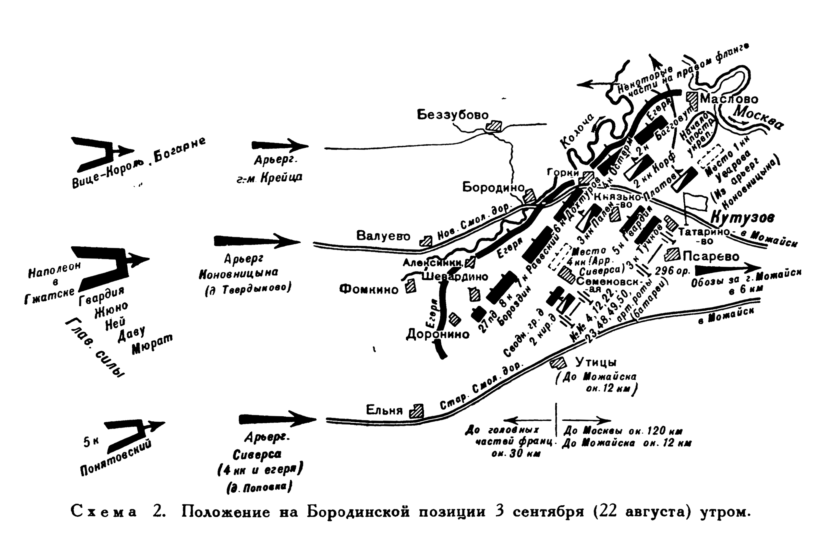 Положение на Бородинской позиции 3 сентября (22 августа) утром