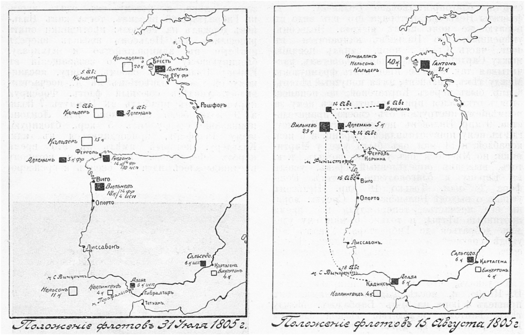 Англо-французские войны. Положение флотов 31 июля и 15 августа 1805 года