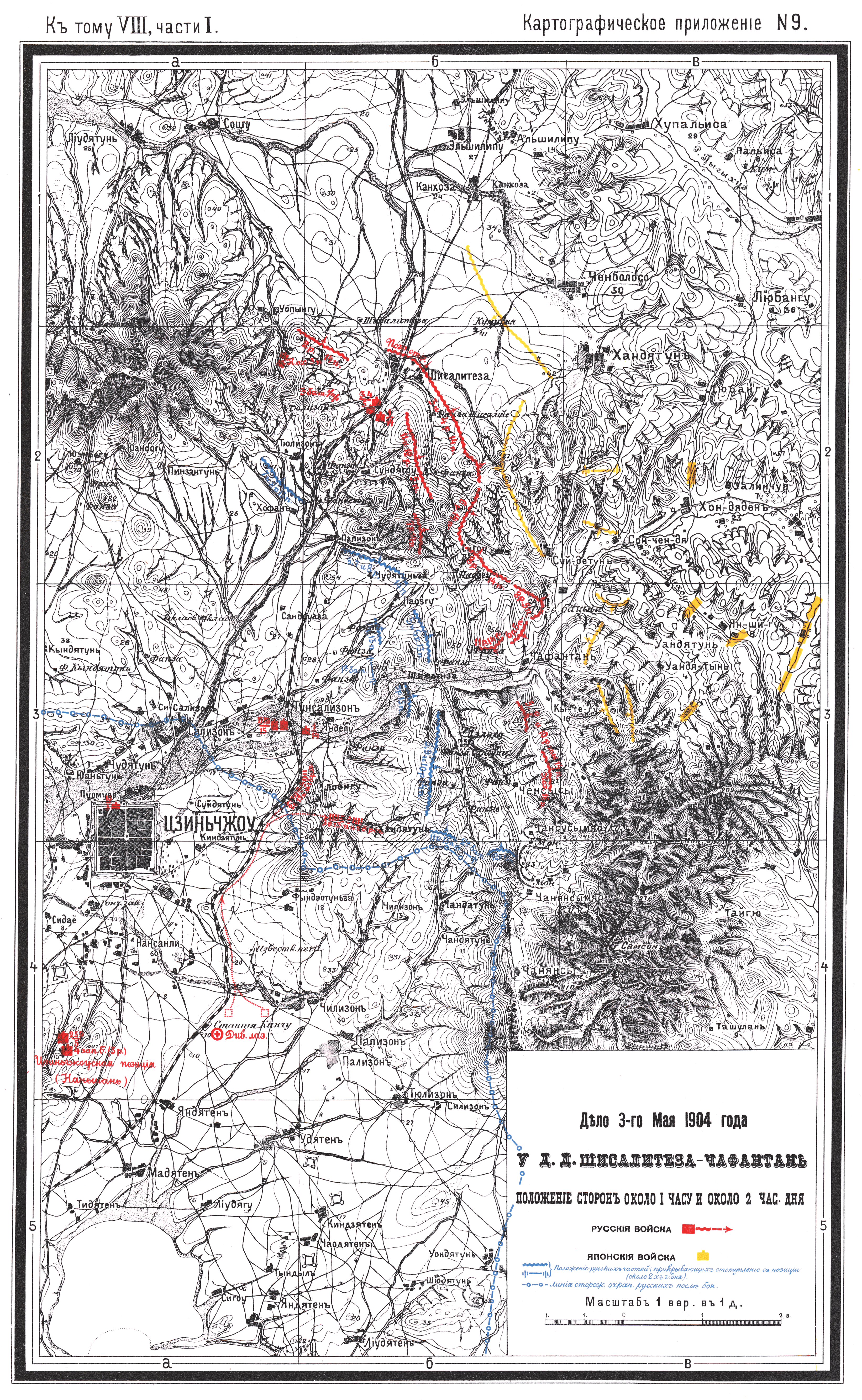 Дело 3 мая 1904 года у деревень Шисалитеза-Чафантань. Положение сторон около 1 часа и около 2 часов дня