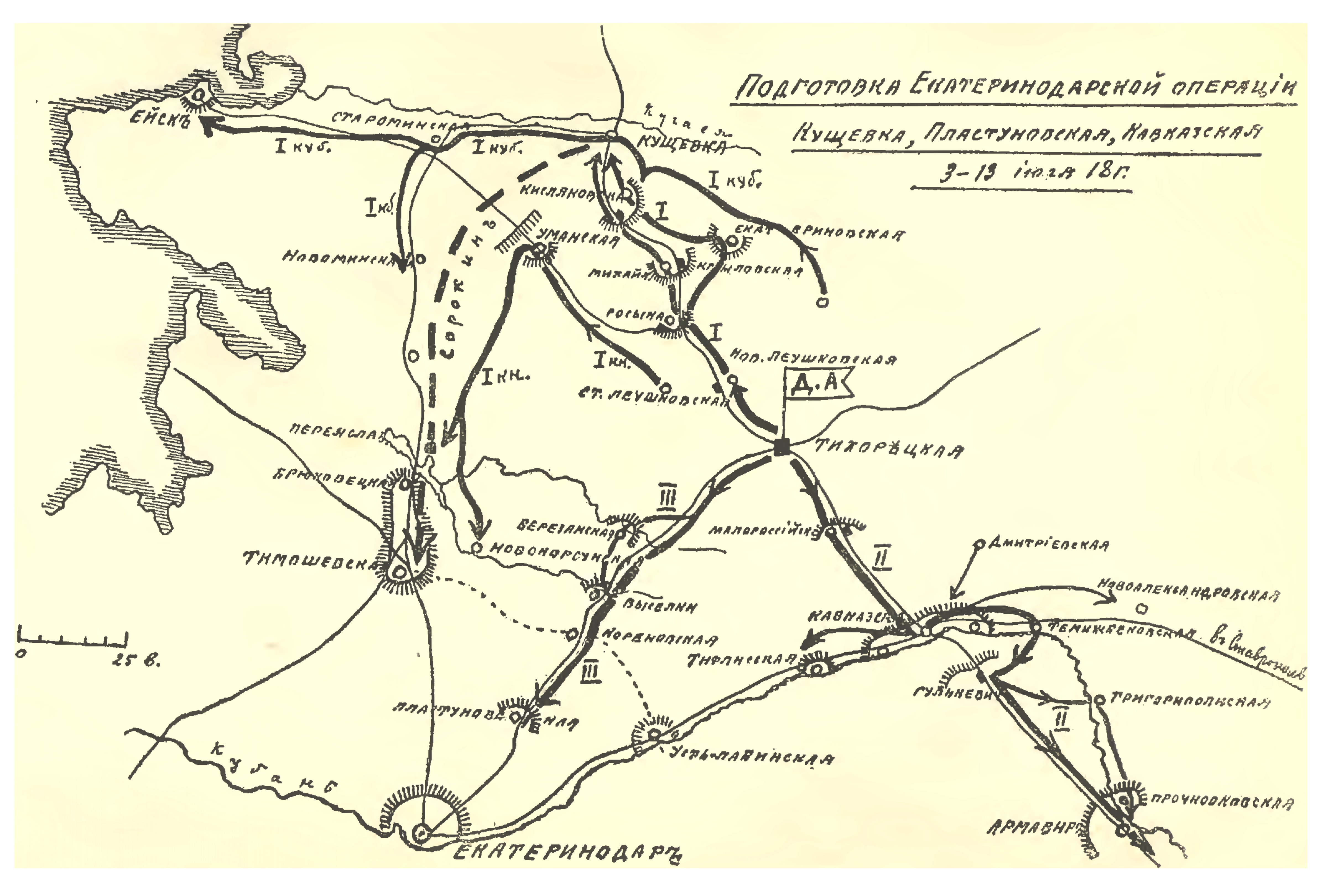 Подготовка Екатеринодарской операции. Кущевка, Пластуновская, Кавказская 3-19 июля 1918 года