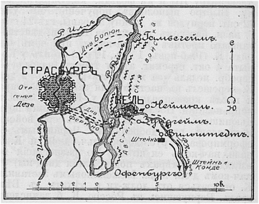 Расположение французских и австрийских войск у форта Кель