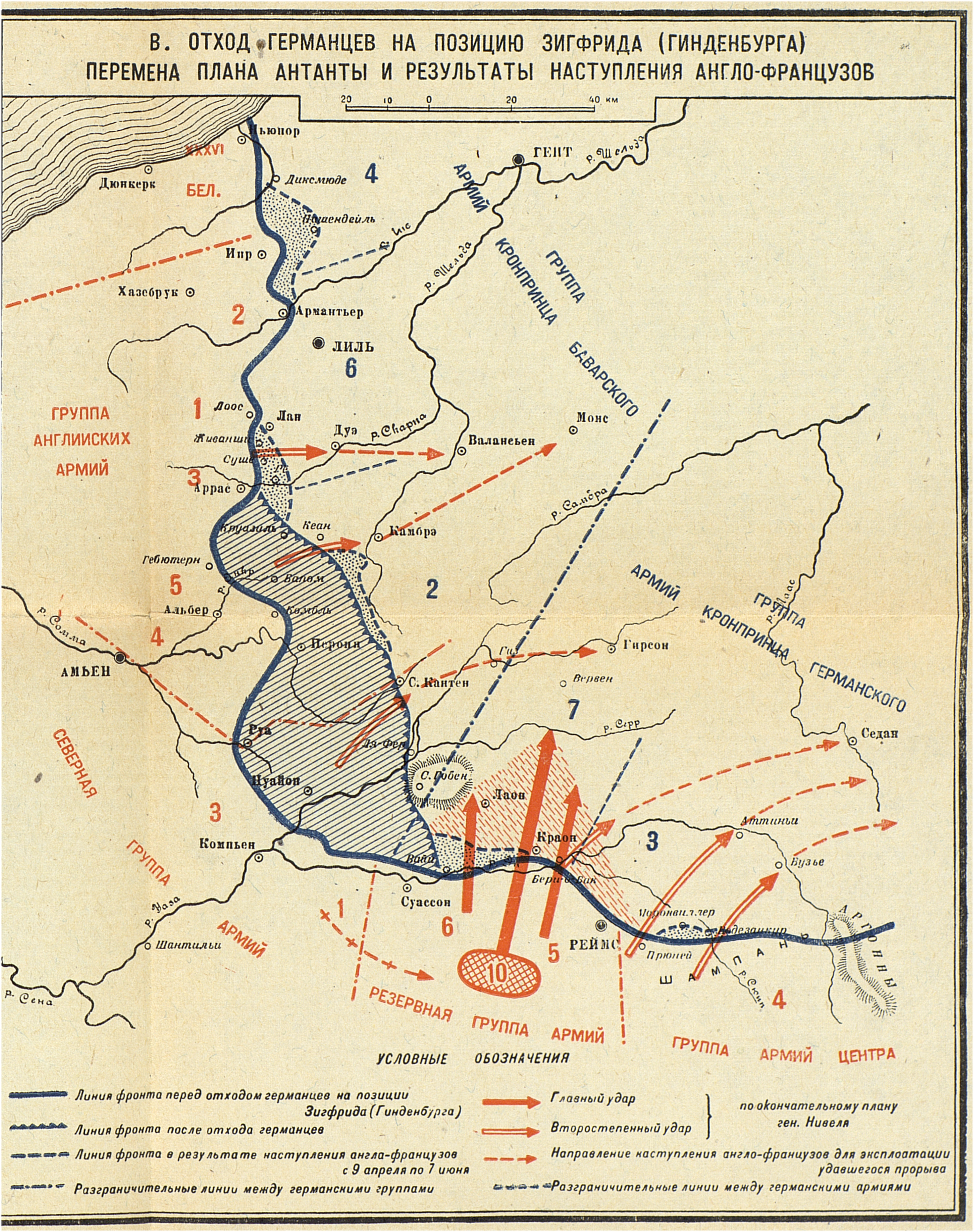 Кампания 1917 года. Французский театр. Отход германцев на позицию Зигфрида (Гинденбурга). Перемена плана АНТАНТЫ и результаты наступления англо-французов