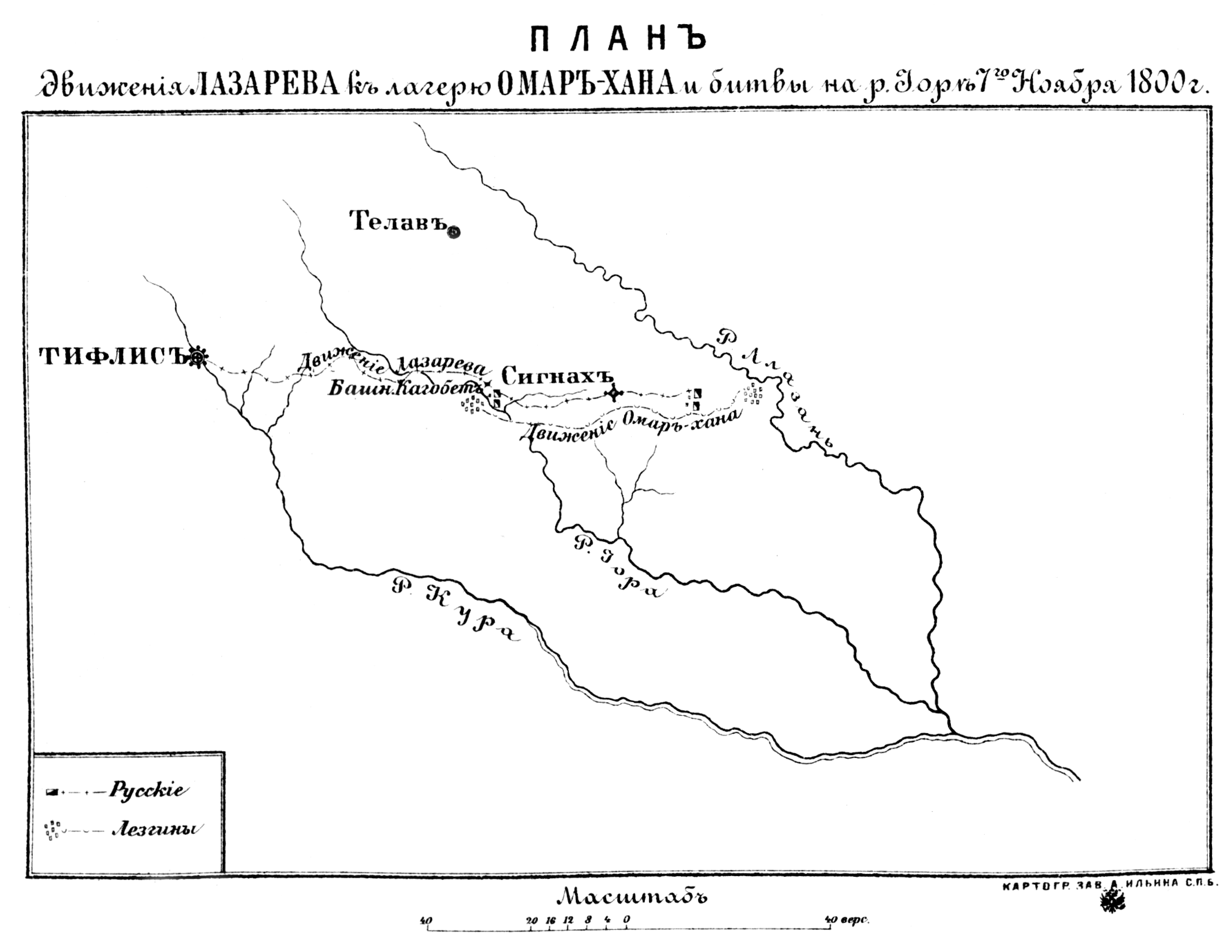 План движения Лазарева к лагерю Омар-хана и битвы на реке Йоре 7 ноября 1800 года