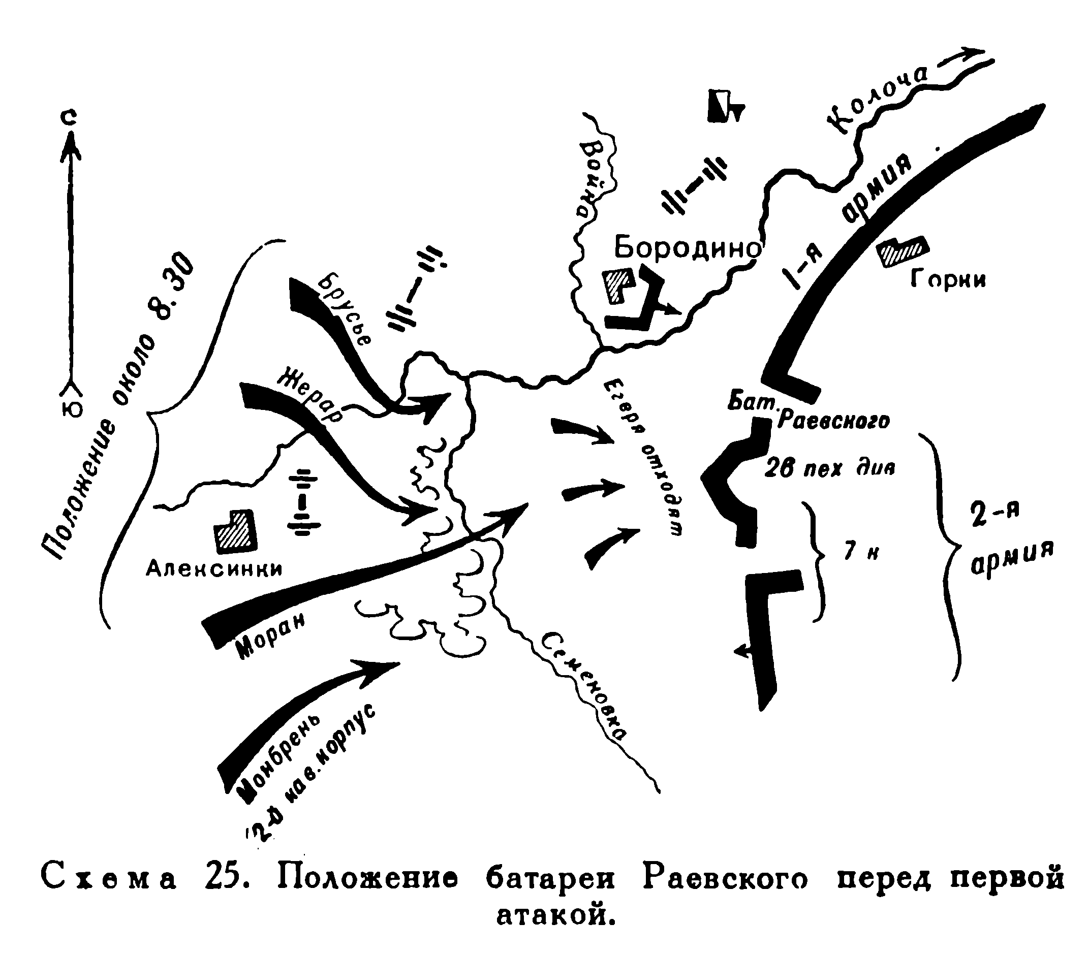 Положение батареи Раевского перед первой атакой
