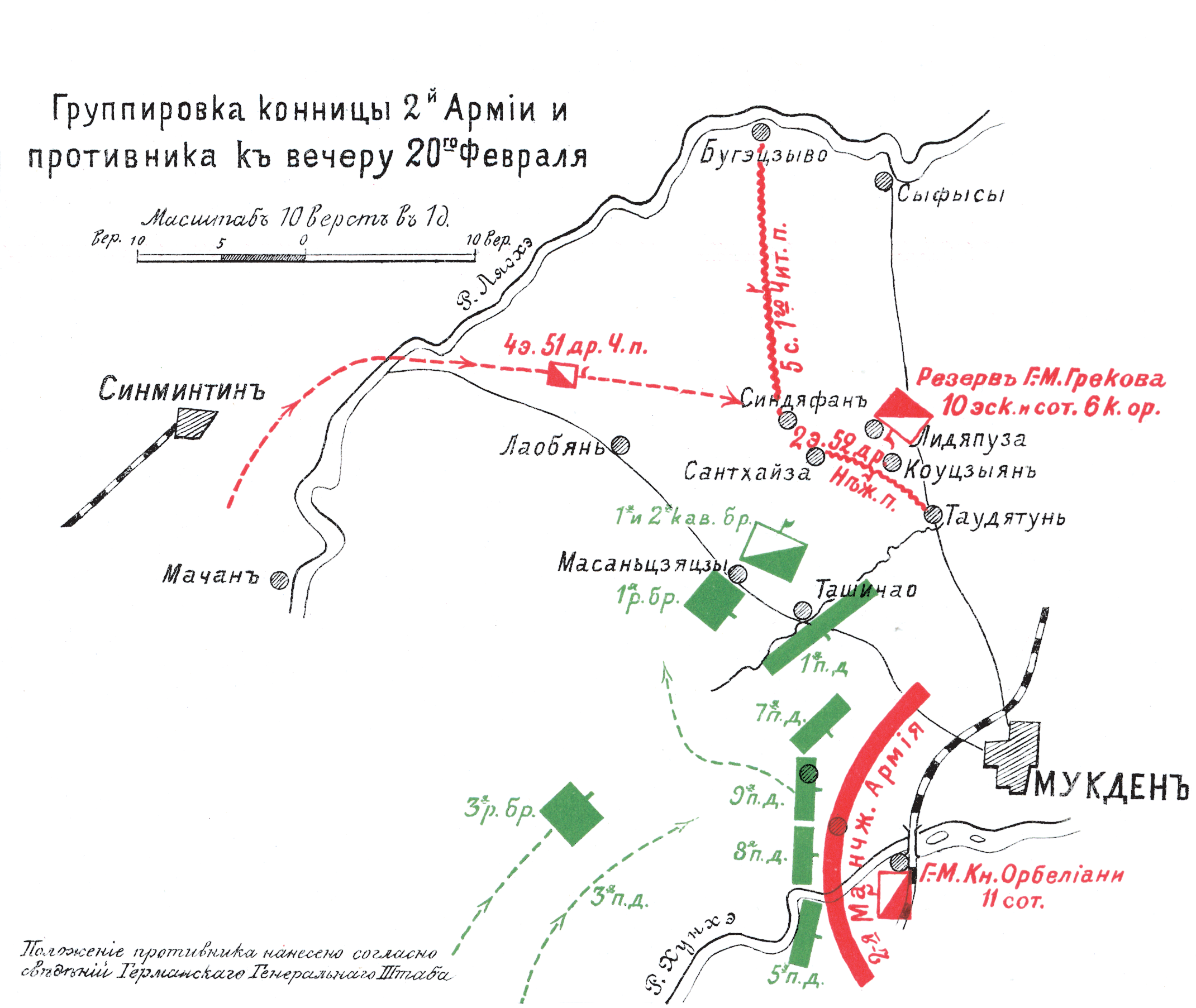 Группировка конницы 2 Армии и противника к вечеру 20 февраля