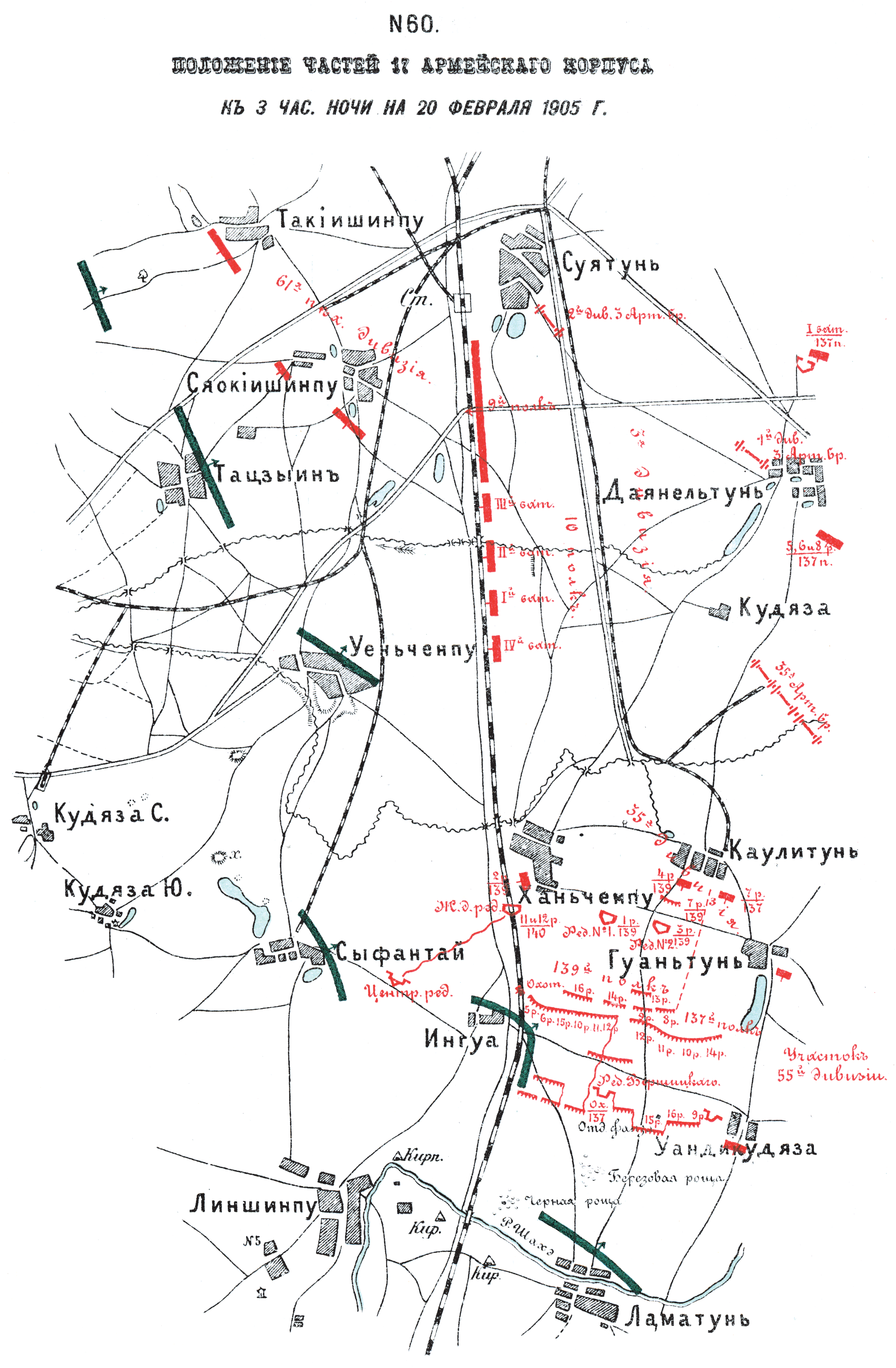 Положение частей 17 армейского корпуса к 3 часам ночи на 20 февраля 1905 года