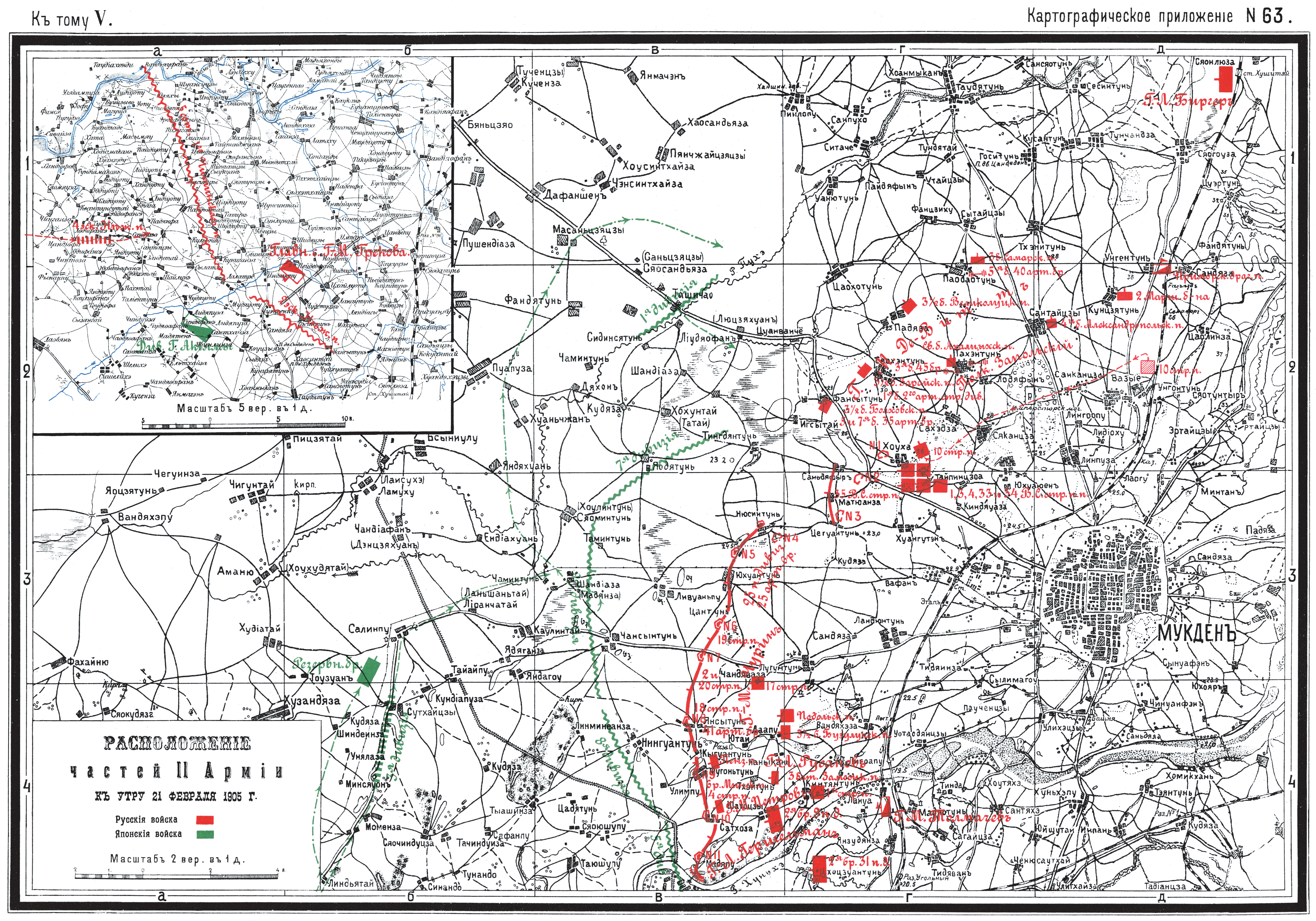 Расположение частей II Армии к утру 21 февраля 1905 года
