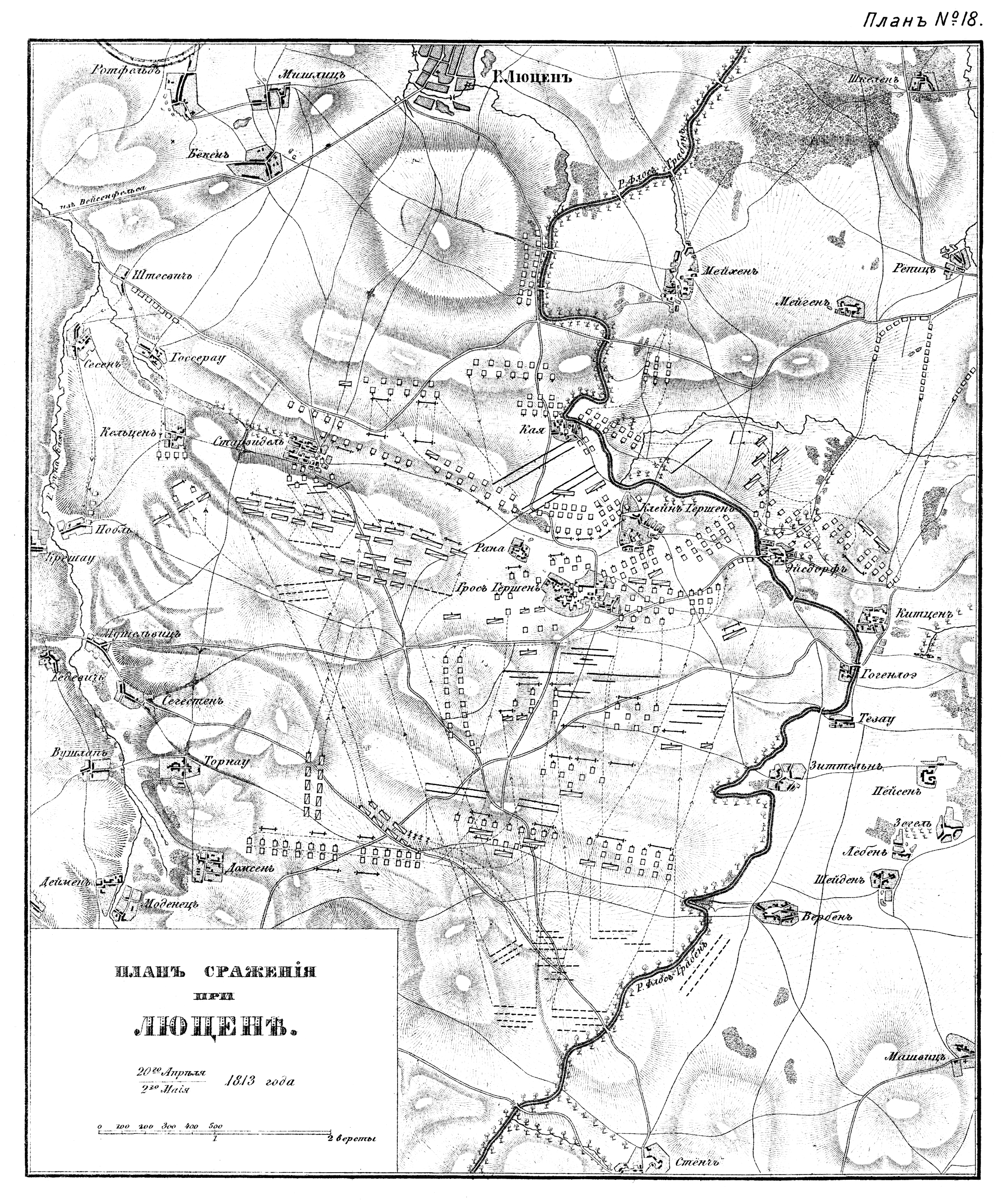 План сражения при Люцене 20 апреля/2 мая 1813 года