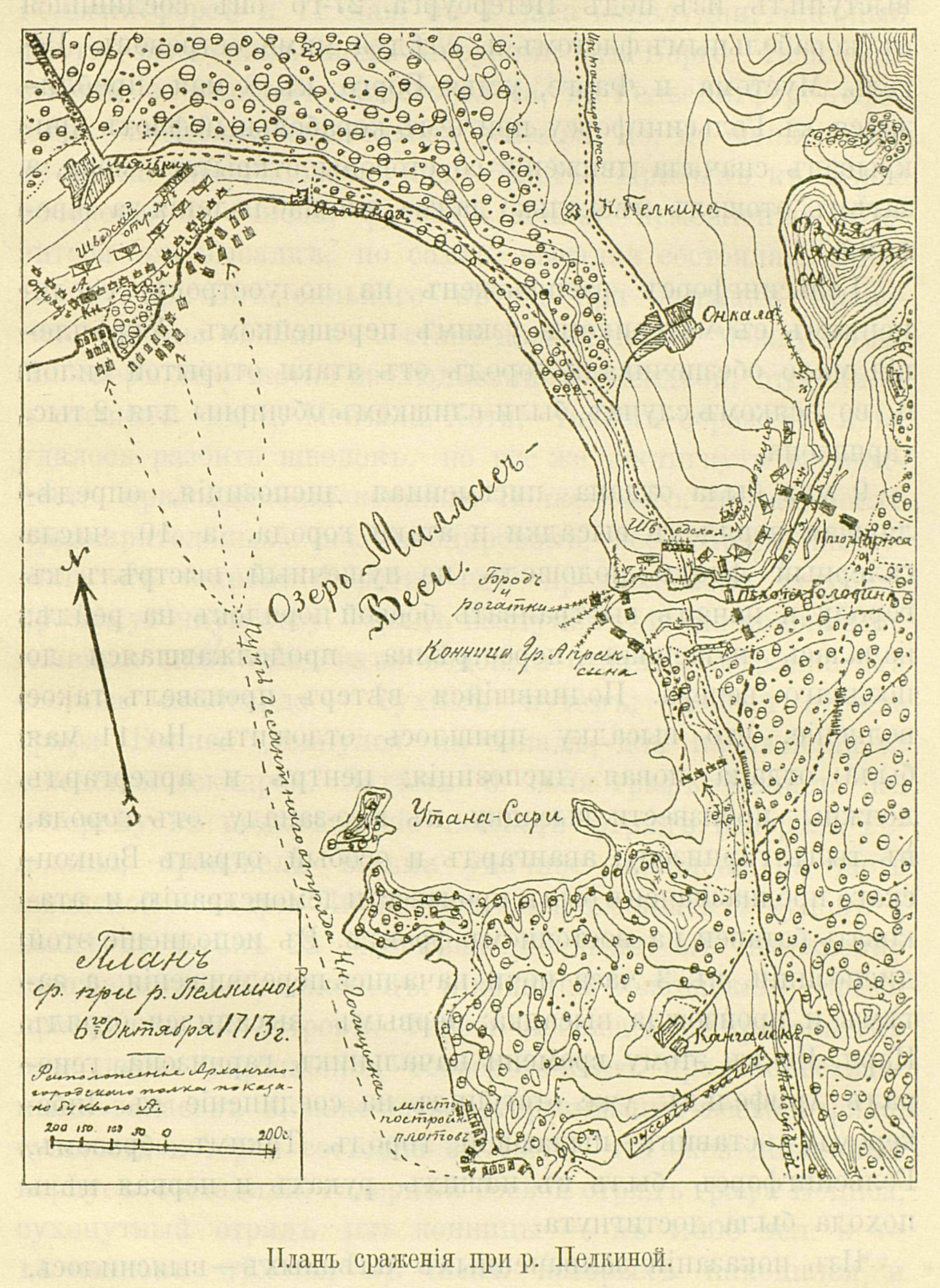 План сражения при реке Пелкиной 6 октября 1713 года