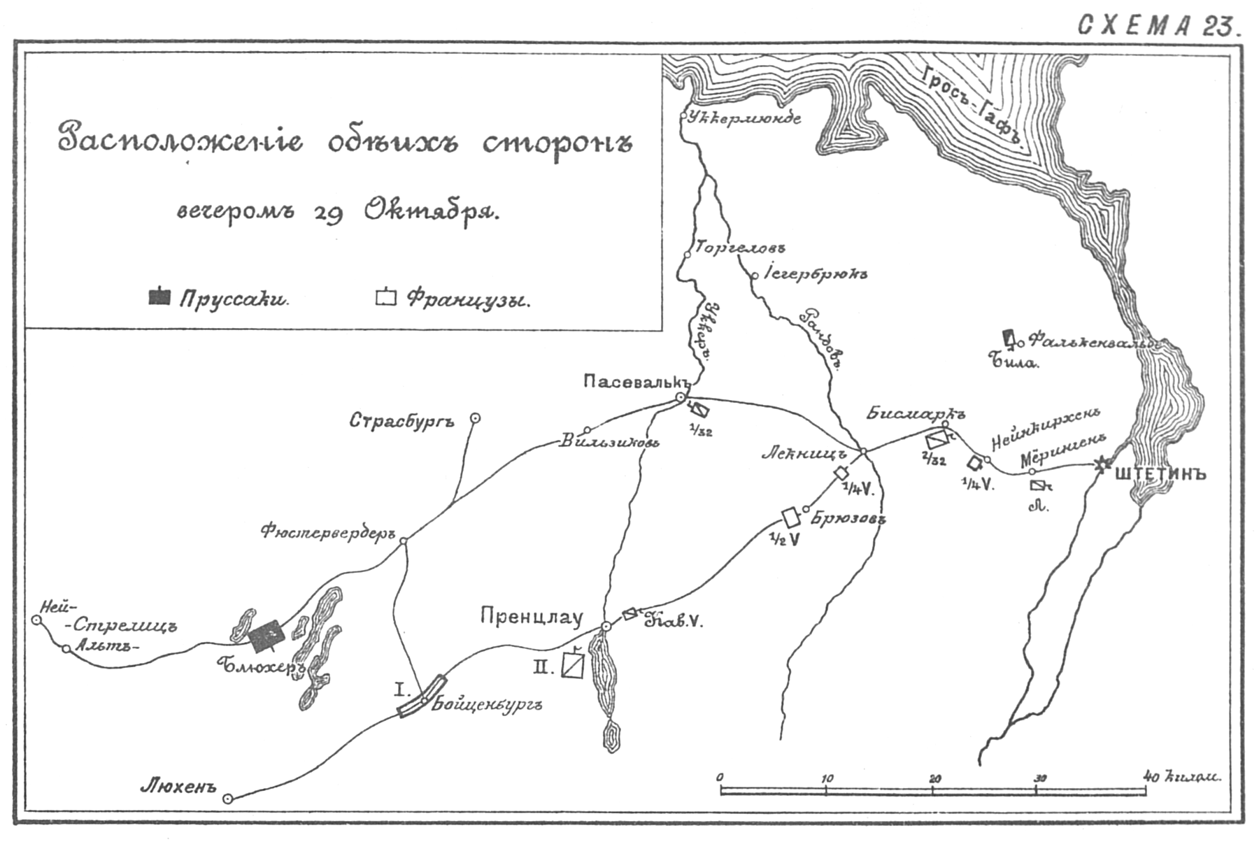 Расположение обеих сторон (Мюрата, Ланна, Бернадота и Блюхера) вечером 29 октября