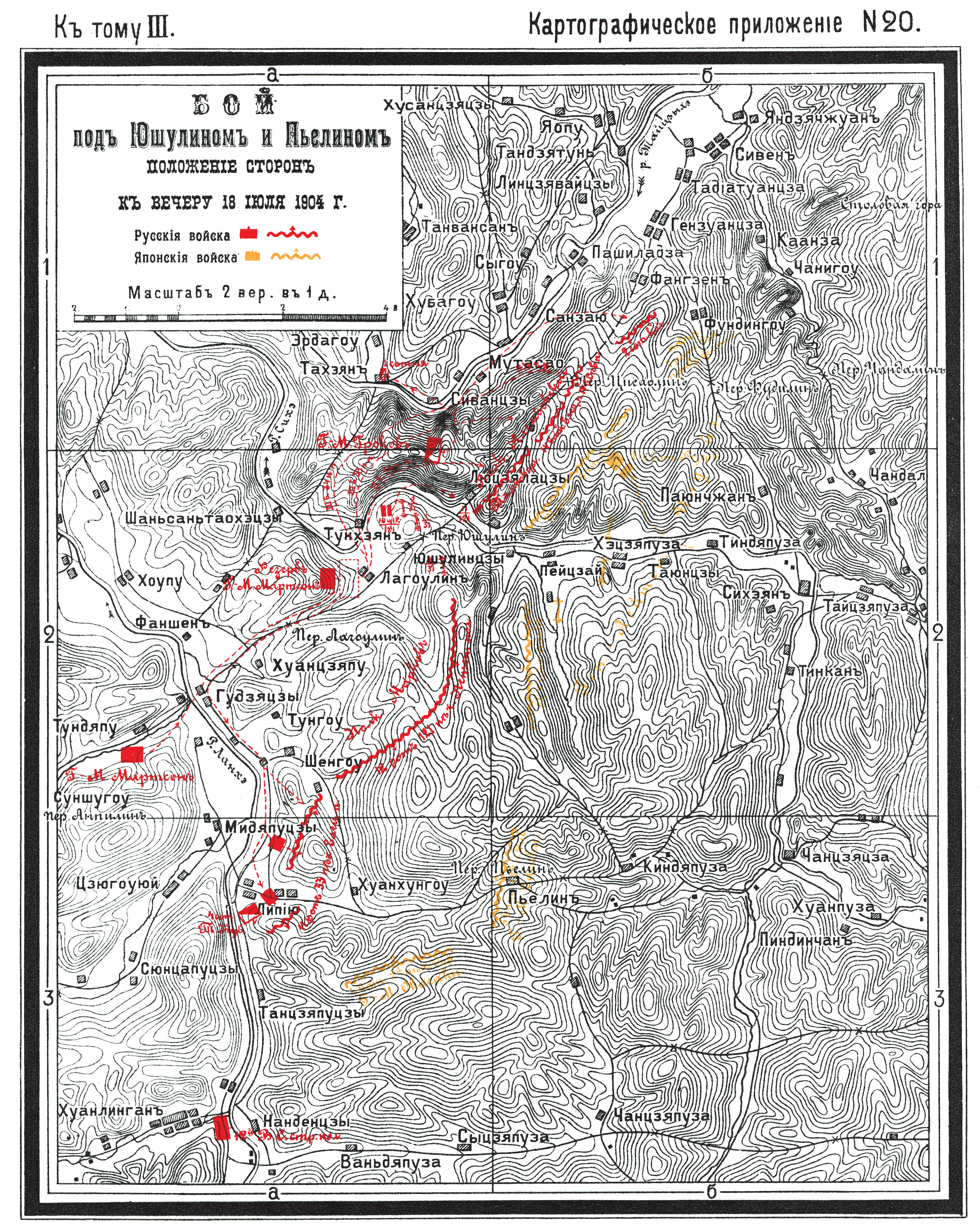 Бой под Юшулином и Пьелином. Положение сторон к вечеру 18 июля 1904 года
