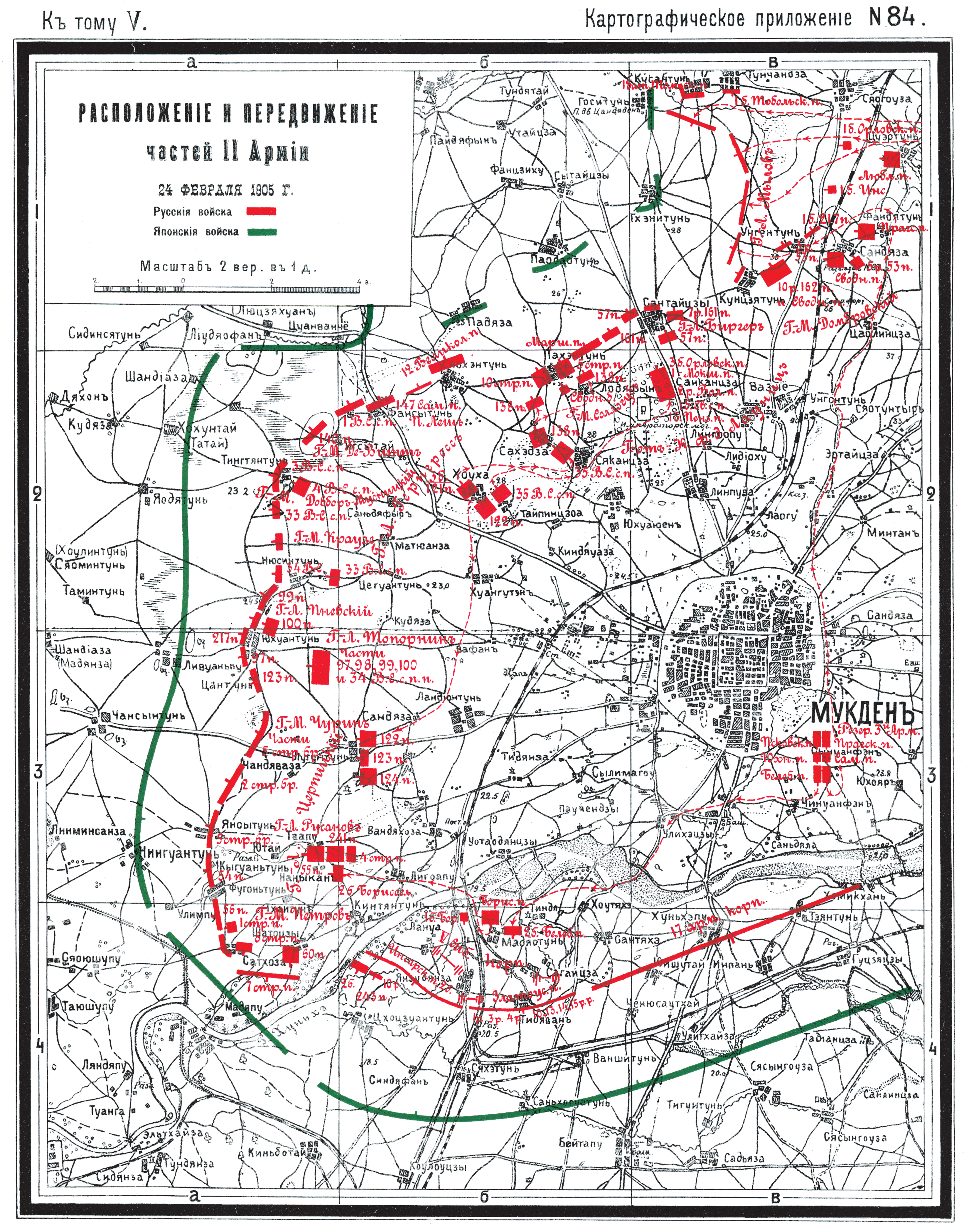 Расположение и передвижение частей II Армии 24 февраля 1905 года