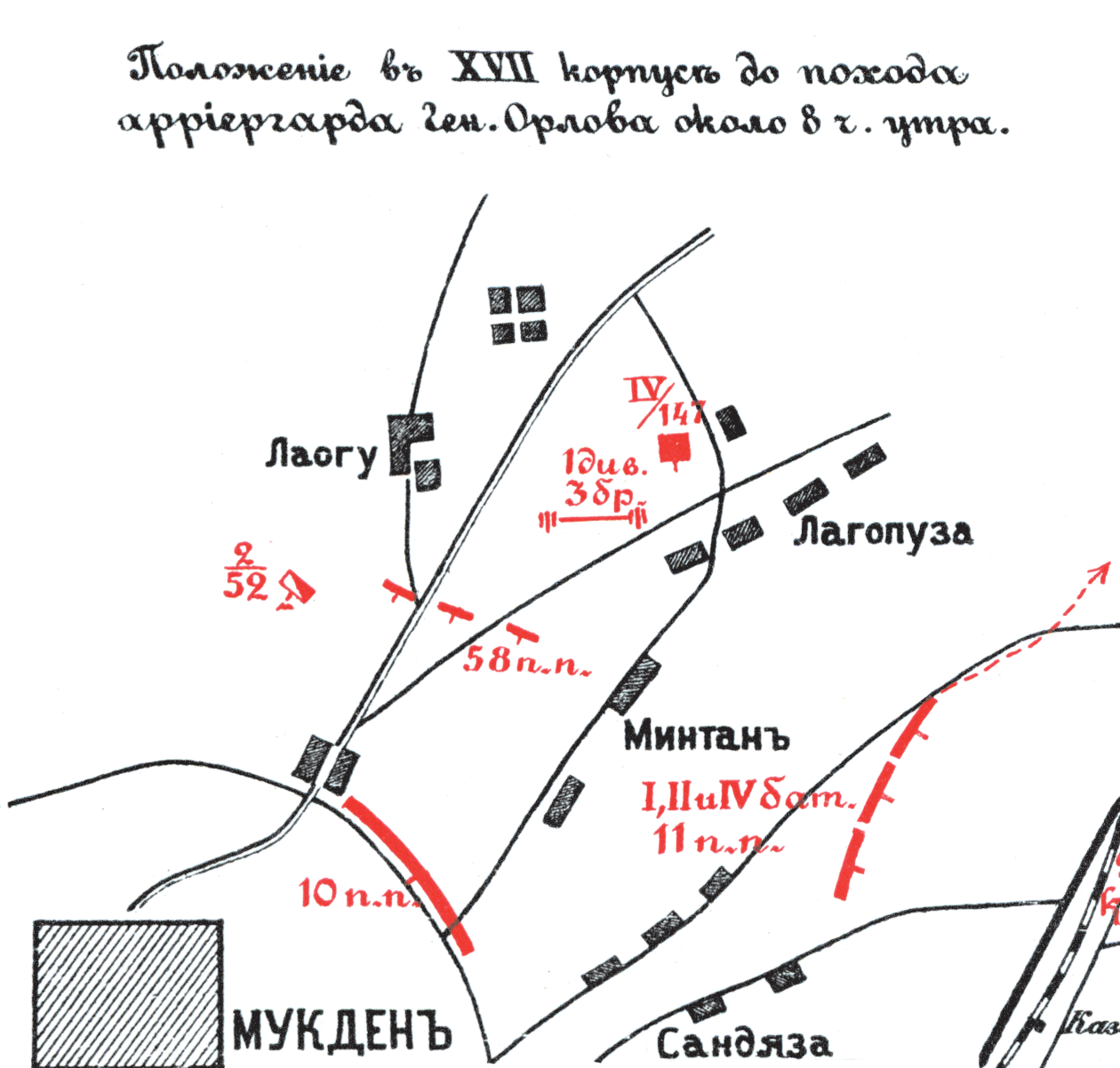 Положение в XVII корпусе до похода арьергарда генерала Орлова около 8 часов утра