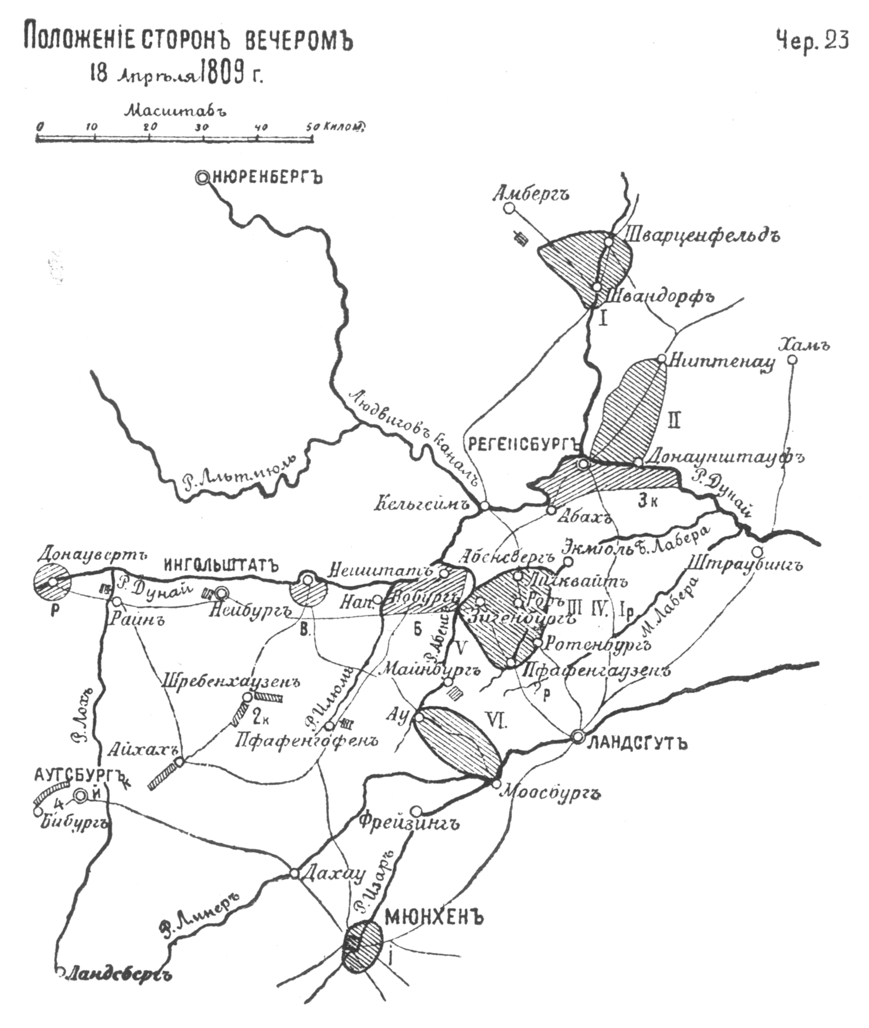 Положение сторон вечером 18 апреля 1809 года