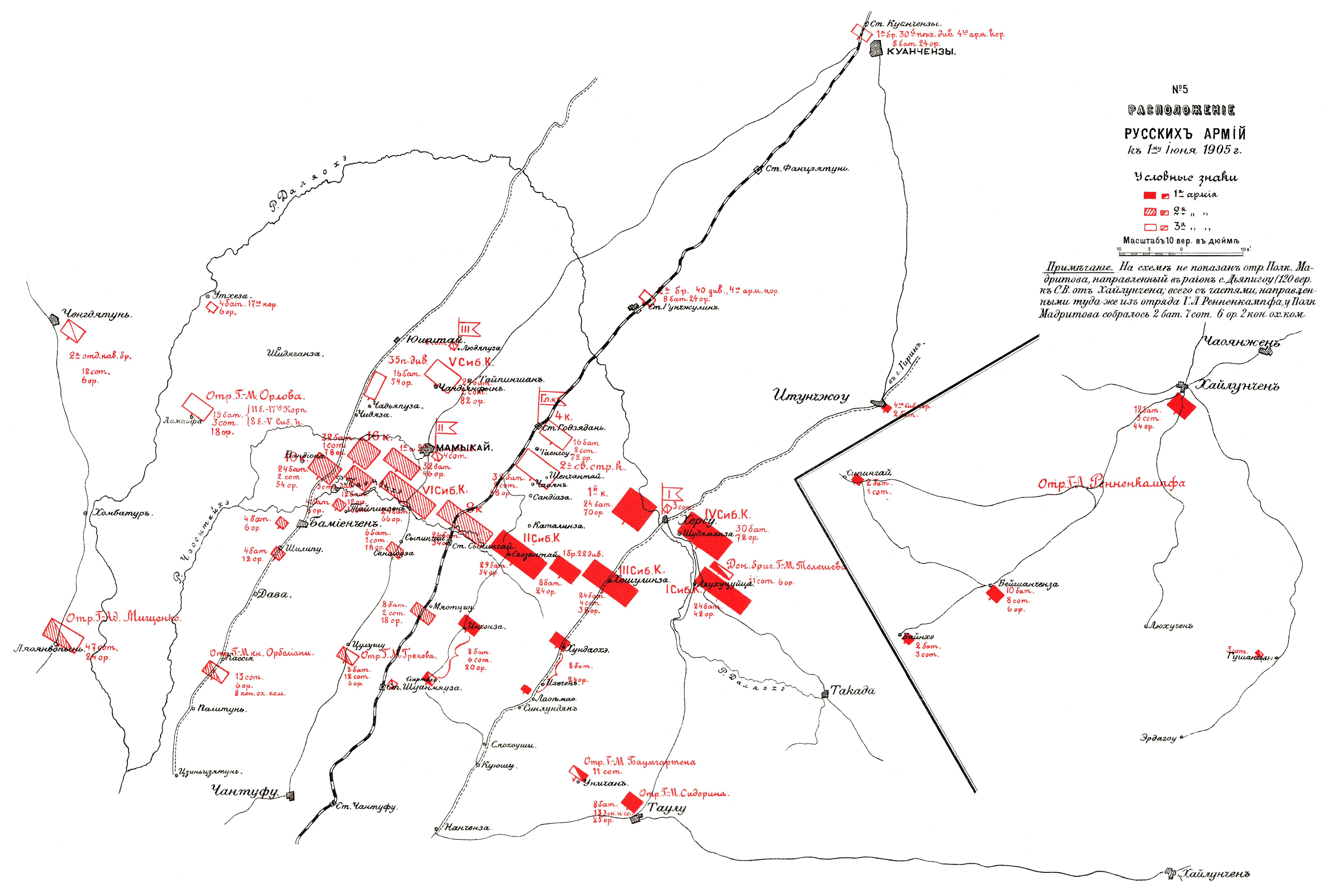 Расположение русских армий к 1 июня 1905 года