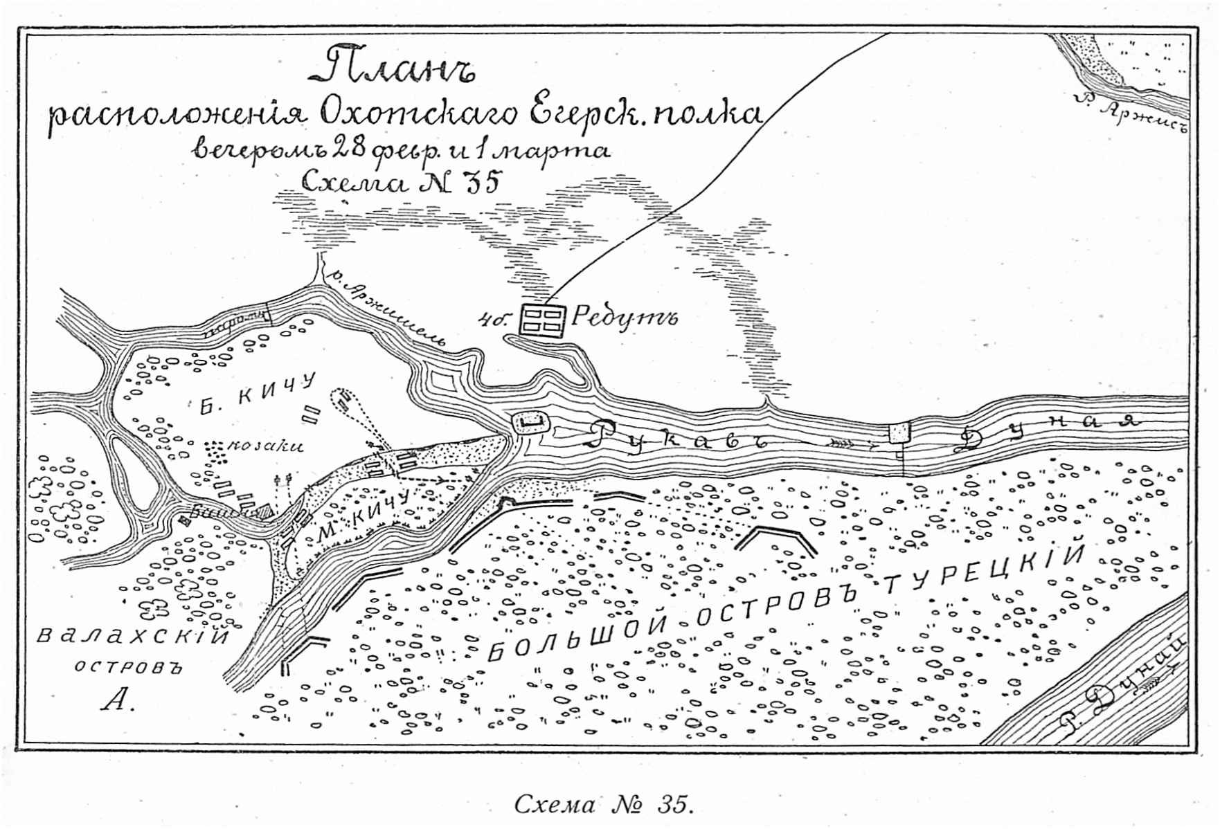 Расположение Охотского Егерского полка вечером 28 февраля и 1 марта 1854 года