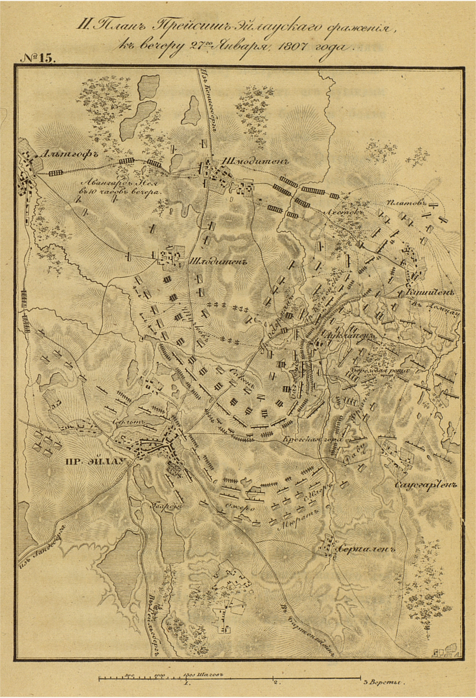 Прейсиш-Эйлауское сражение к вечеру 27 января 1807 года