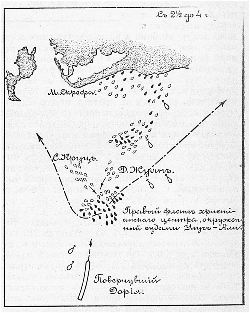 Сражение 7 октября 1571 года у Лепанто между соединенными христианскими и мусульманскими флотами с 14 до 16 ч дня