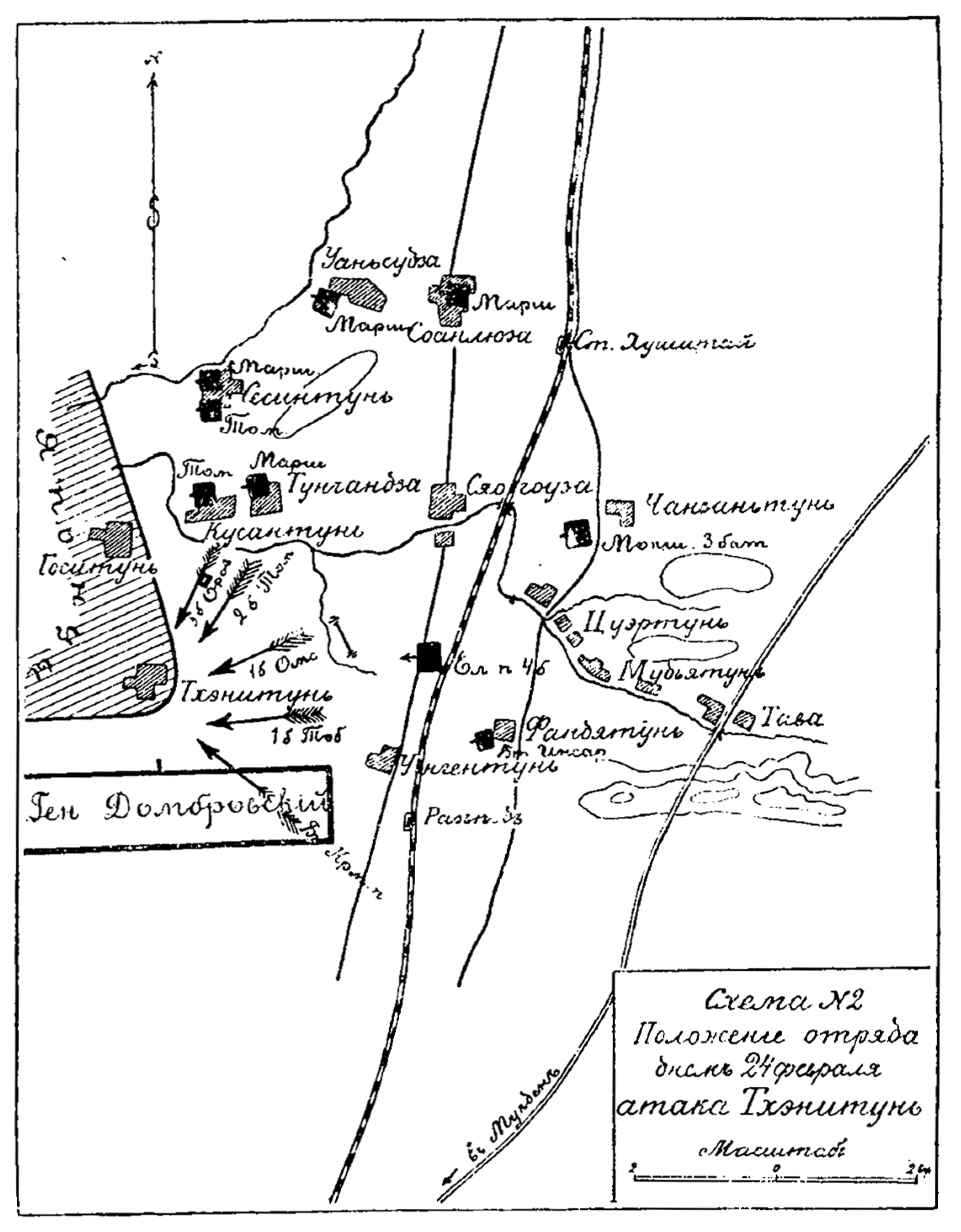 Положение отряда днем 24 февраля. Атака у Тхэнитунь