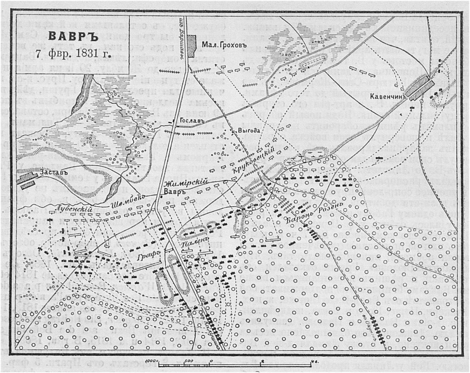 Карта-схема битвы при Фрауштадте, 13 (3) февраля 1706 года