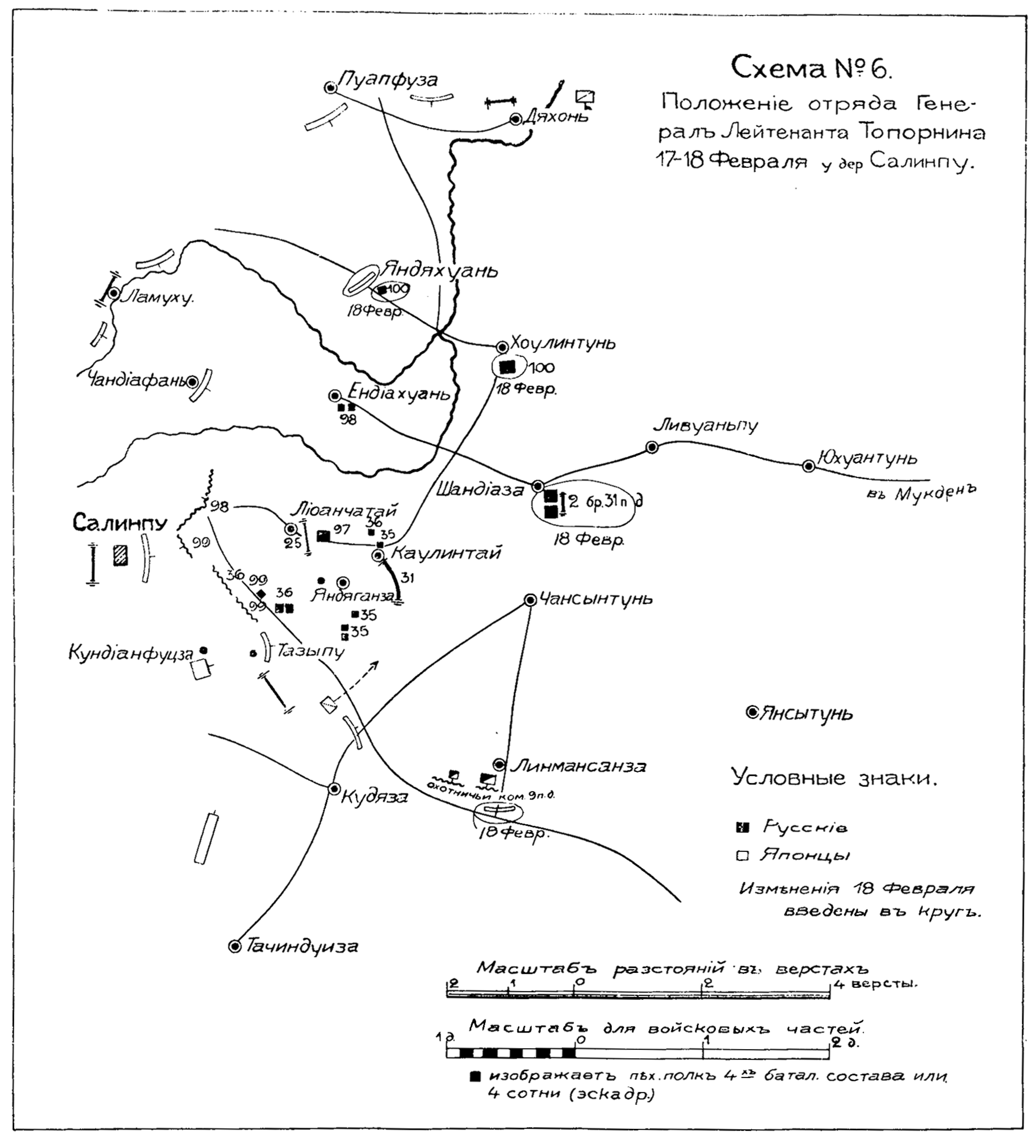 Положение отряда Генерал-лейтенанта Топорина 17-18 февраля у деревни Салинпу