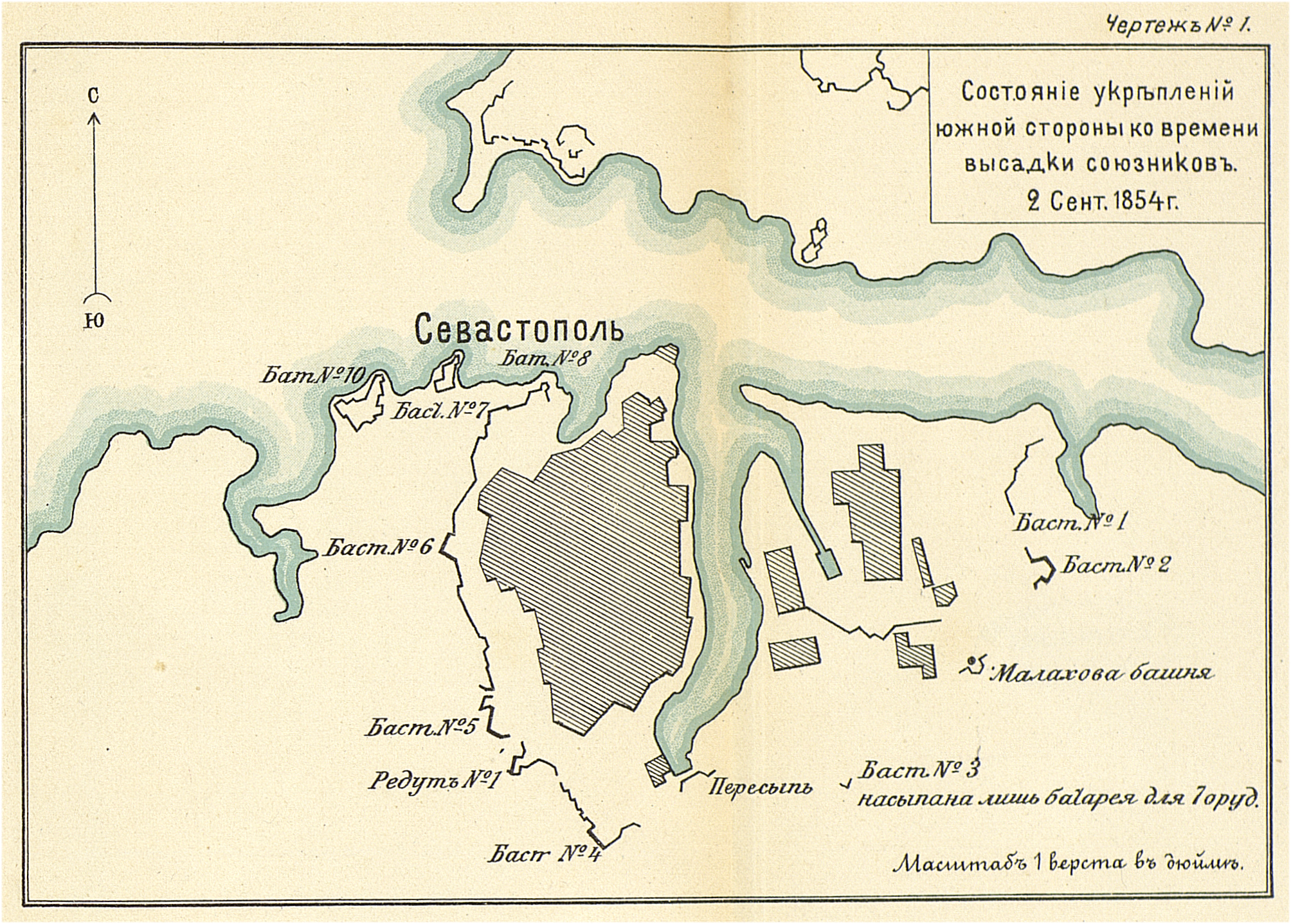 Состояние укреплений южной стороны ко времени высадки союзников 2 сентября 1854 года