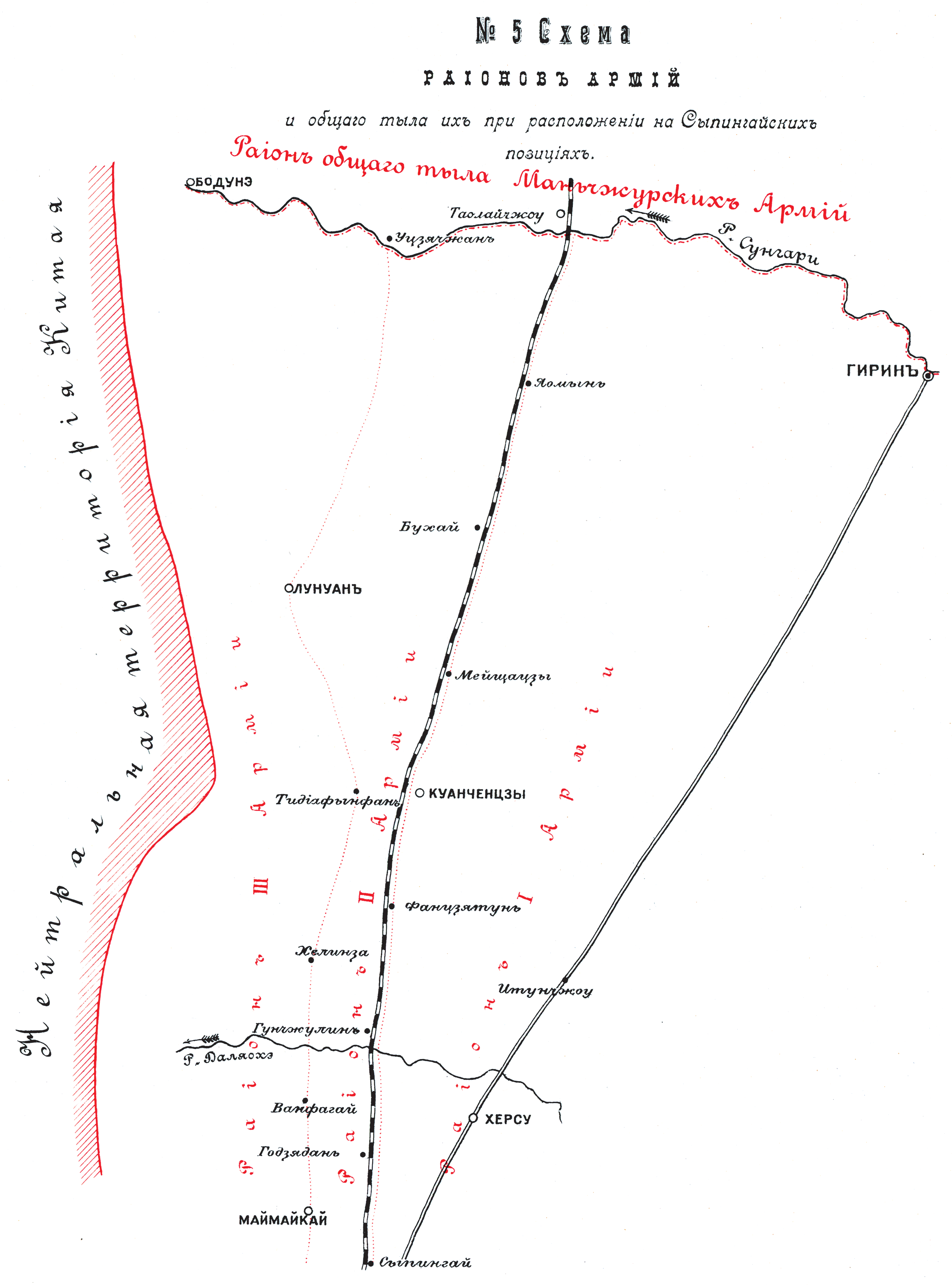 Районы армий и общего тыла их при расположении на Сыпингайских позициях