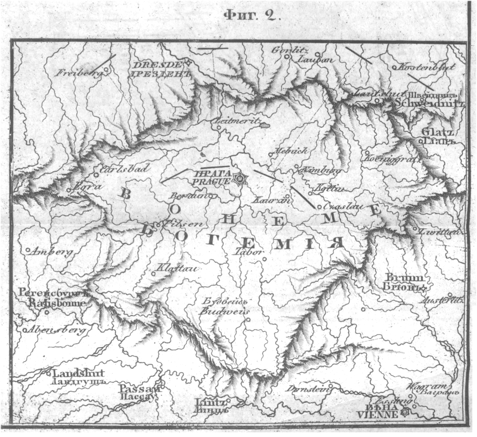 Район военных действий пятидневного боя 19-23 апреля 1809г.