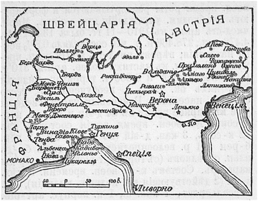 Театр военных действий итальянской кампании Бонапарте 1796-97 гг.