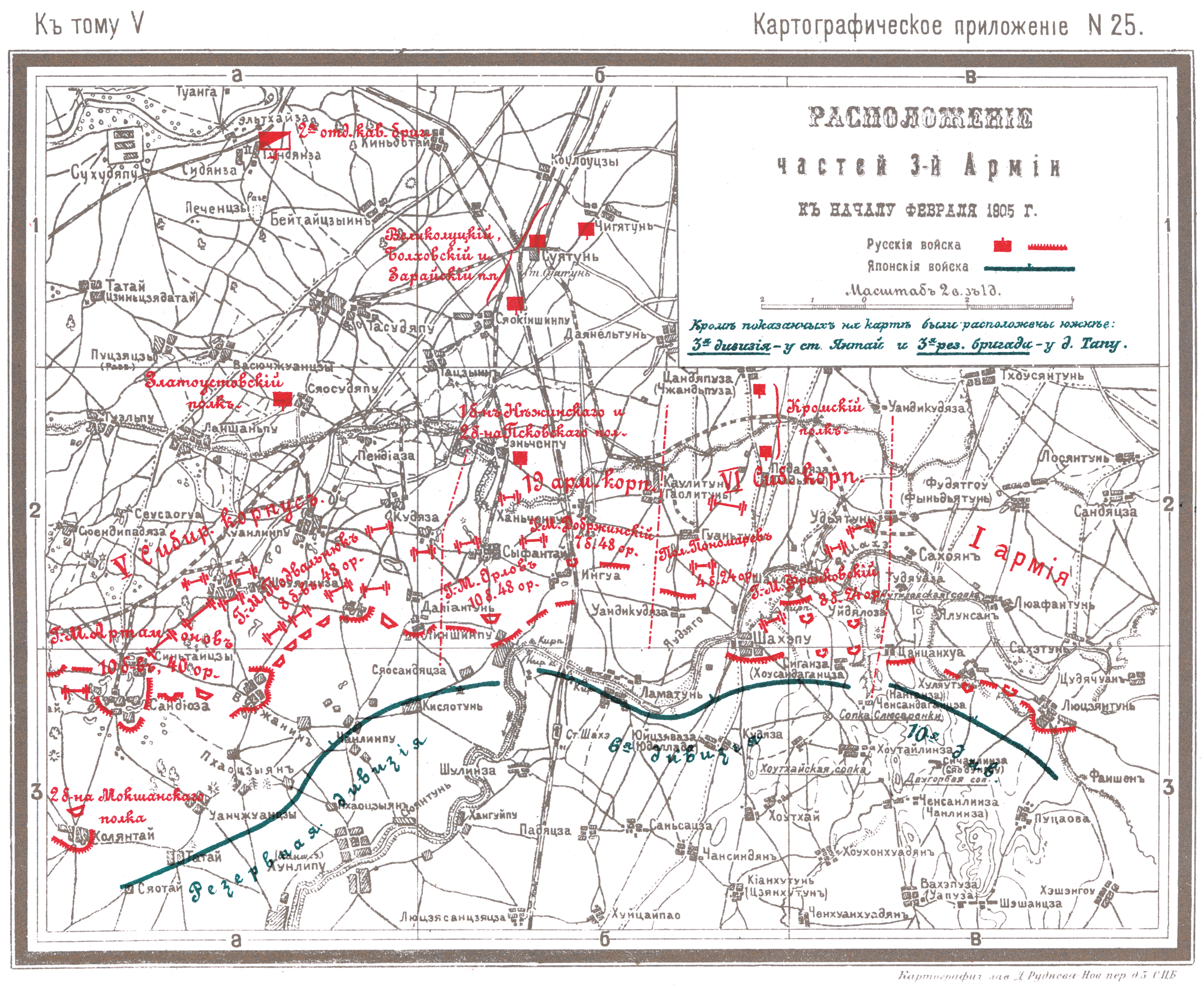 Расположение частей 3 Армии к началу февраля 1905 года