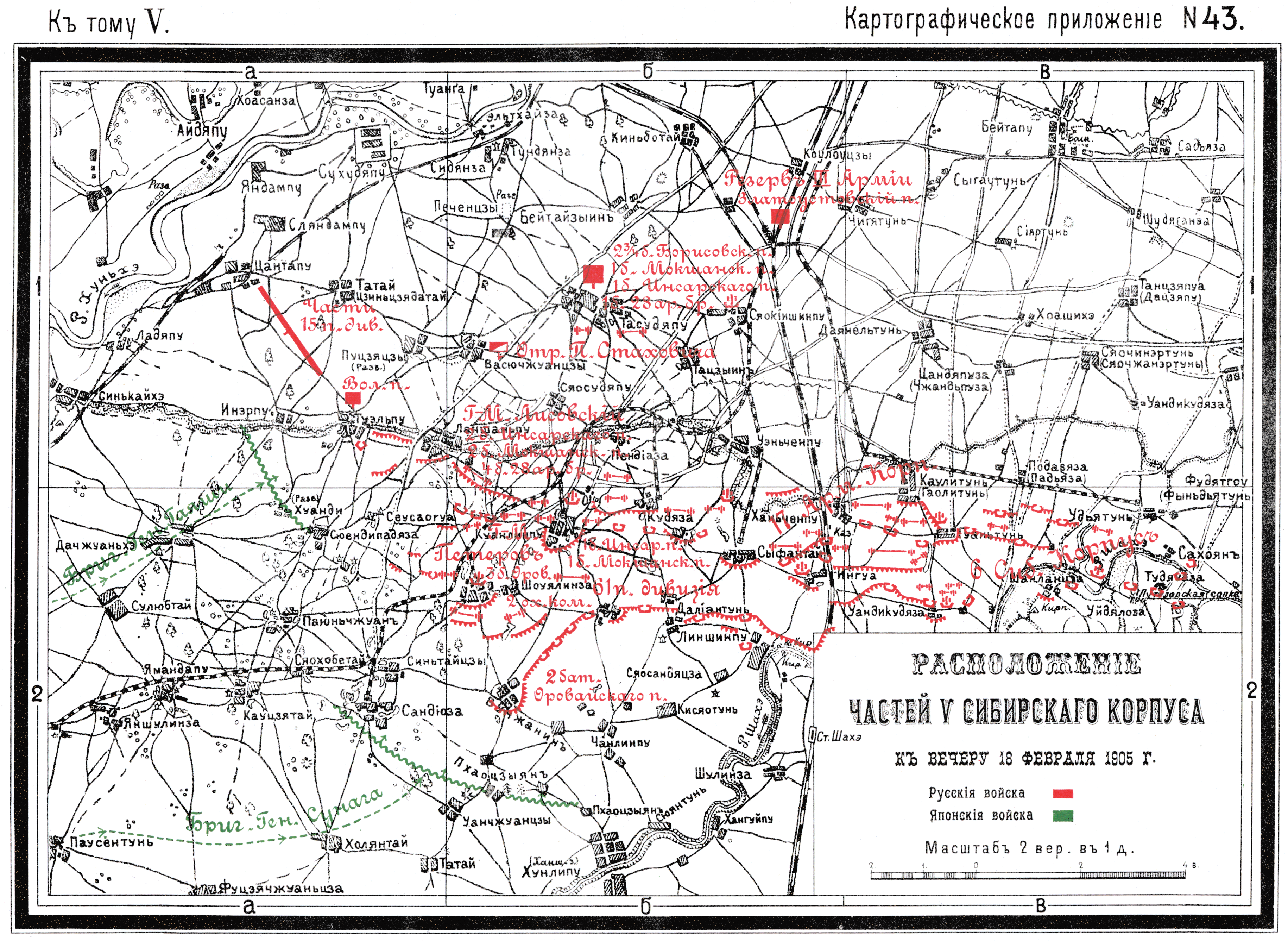 Расположение частей V Сибирского корпуса к вечеру 18 февраля 1905 года