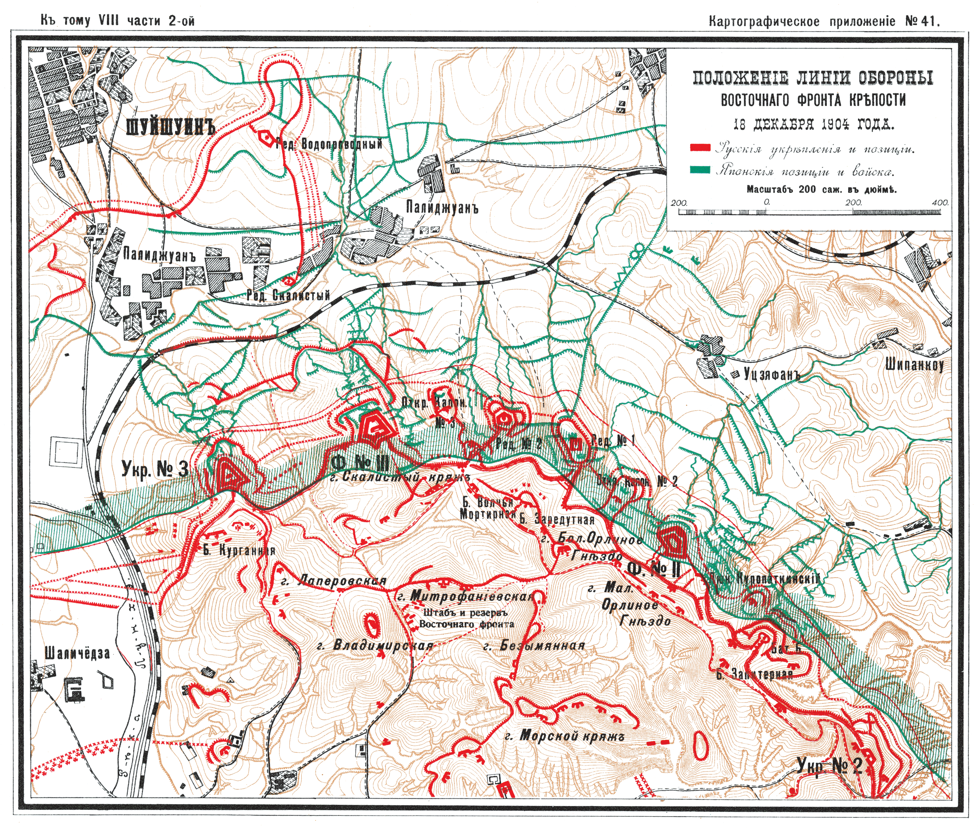 Положение линии обороны Восточного фронта крепости 18 декабря 1904 года