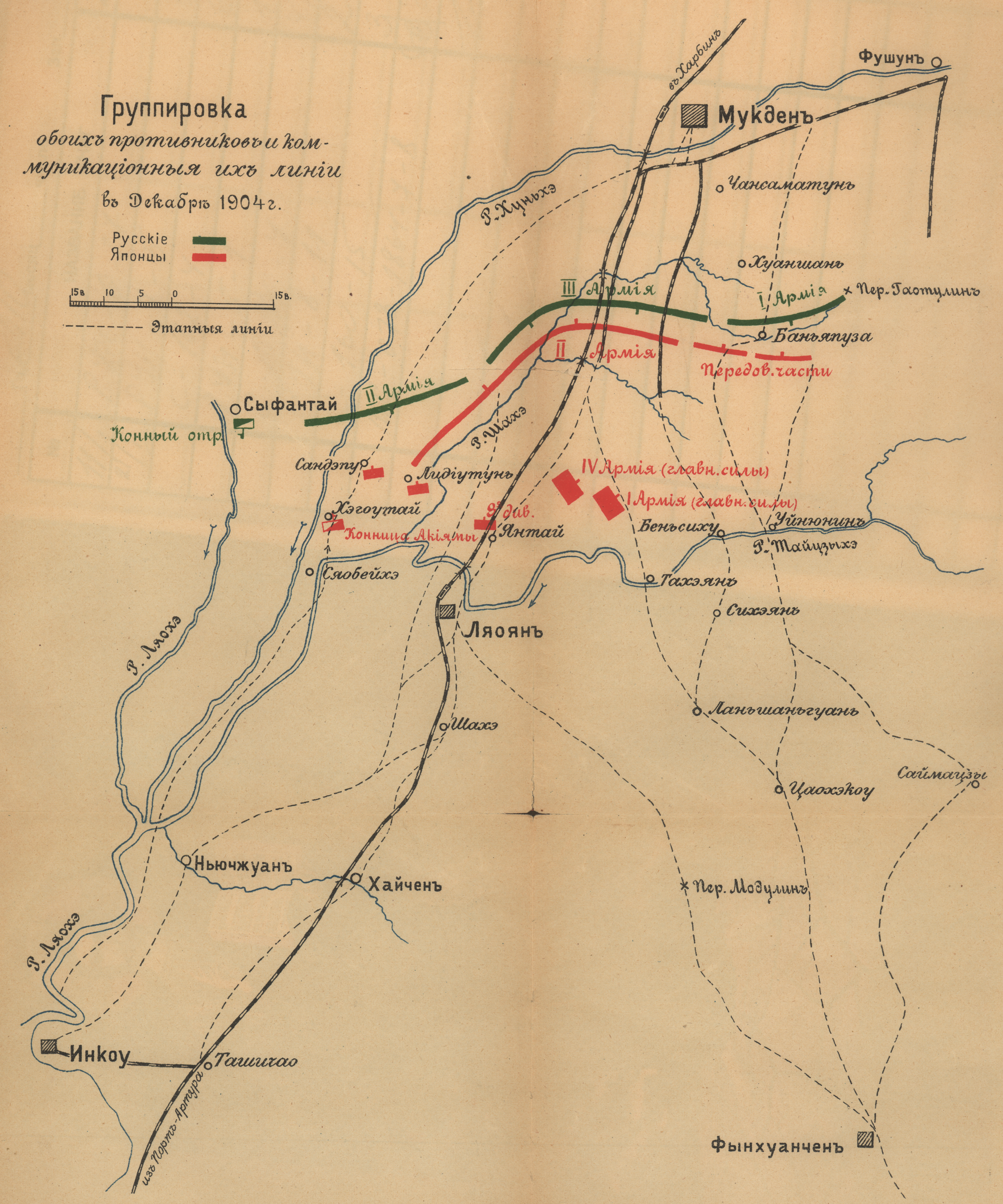 Группировка обоих противников и ихкоммуникационные линии в декабре 1904 года