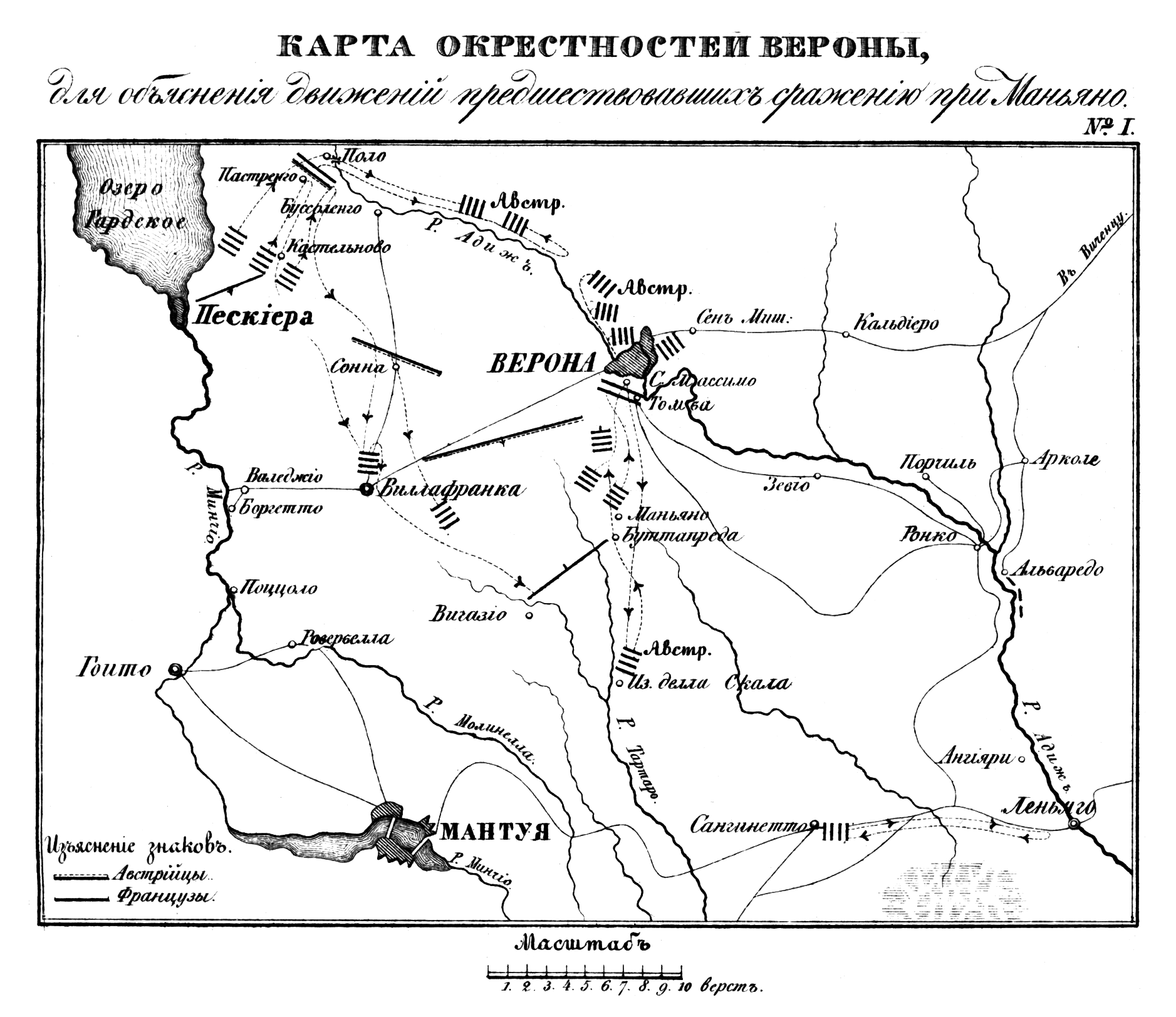 Окрестности Вероны, для объяснения движений, предшествовавших сражению при Маньяно