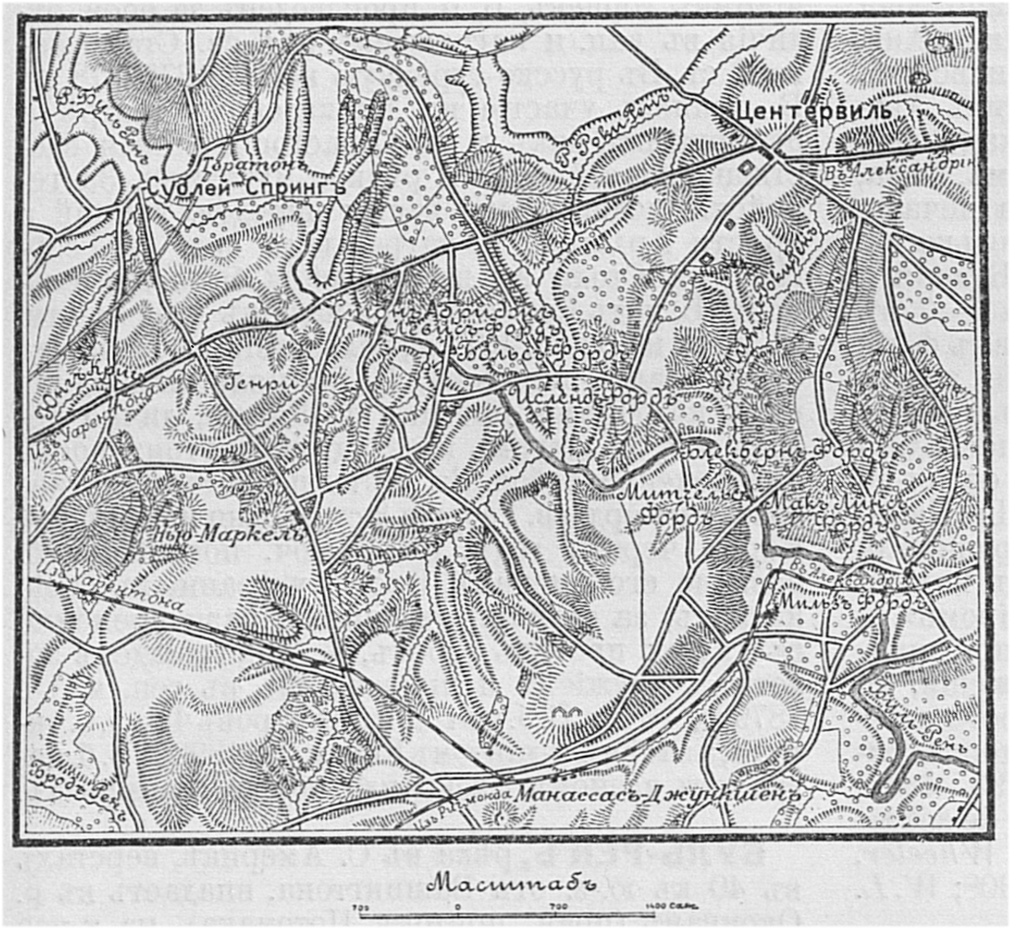 Район сражения 21 июля 1861 года на реке Буль-рен