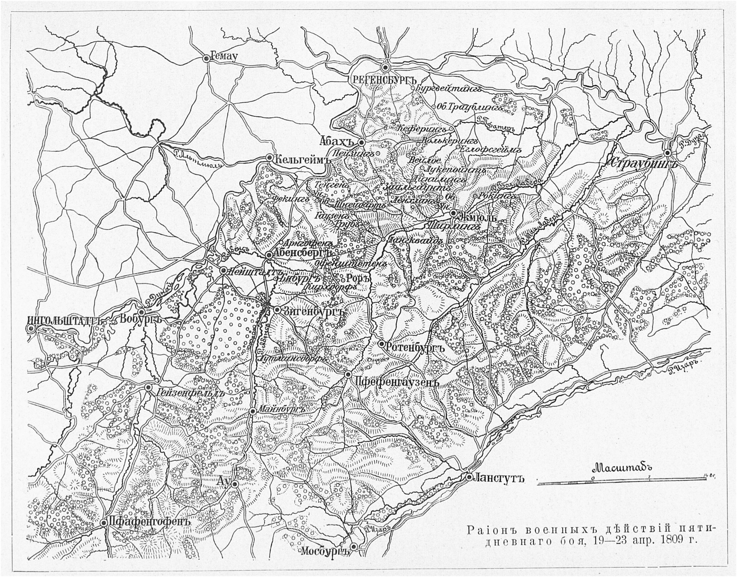 Район военных действий пятидневного боя 19-23 апреля 1809г.