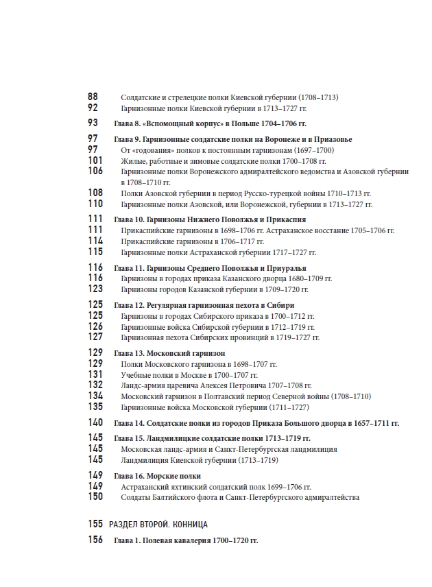 В ходе военных реформ Петра I произошел отход от милиционного устройства войска в пользу постоянной армии, которая находилась в одном и том же штатном составе в военное и мирное время и в историографии получила обозначение «регулярной». Процесс создания регулярной армии в 1700–1720 гг. до сих пор недостаточно изучен, и данная работа представляет собой серию очерков по отдельным родам войск (пехота и конница) и частям вооруженных сил, как главной или «полевой» армии, так и по всем регионам Российского царства. В основе работы — история отдельных воинских частей, в первую очередь полков, а также шквадронов и отдельных команд, что в комплексе позволяет посмотреть на военное строительство Петровской эпохи с нового ракурса. Формирование и боевой путь каждого воинского подразделения — это история России первой четверти XVIII в. «в лицах», где коллективным «лицом» оказывается полк, как отдельный сплоченный коллектив с собственным боевым путем и особой судьбой.