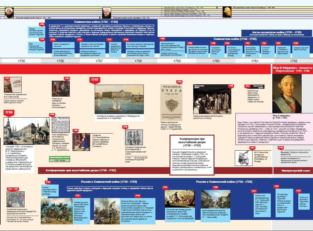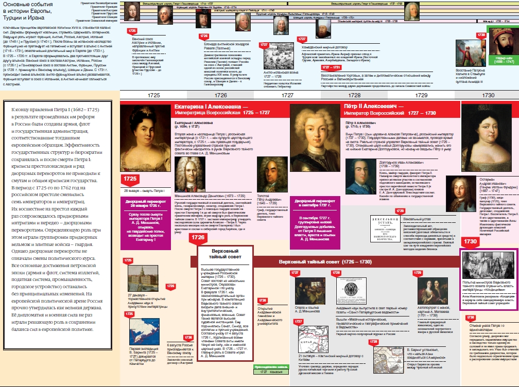 Настоящий выпуск посвящён истории российской государственности и российской монархии XVIII века – в период от смерти Петра I и до воцарения Екатерины II. Отражена хронология важных для России событий этого периода на фоне ключевых событий и процессов в других европейских странах.