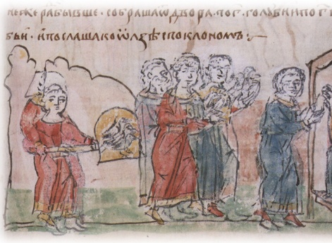 Княгиня русская Княгиня Ольга, жена Игоря, после его смерти стала правительницей Руси (позже фактов женского правления не было до конца XVII в.) ввиду малолетства их сына Святослава. Она жестоко отомстила древлянам, убившим Игоря: разгромив Древлянскую землю, включила ее непосредственно в состав владений киевской княжеской династии. Затем Ольга упорядочила сбор дани в других регионах Руси. В 946 или 957 г. княгиня совершила поездку в Константинополь, где была принята императором Константином VII Багрянородным и приняла христианство, получив крестильное имя Елена. На рубеже 950-960-х гг. Ольга предприняла попытку сделать христианство государственной религией Руси, причем переговоры о крещении страны вела не с Византией (с которой отношения в то время ухудшились), а с Германией, обратившись к королю Оттону I. Но сын Ольги Святослав и его окружение воспротивились планам княгини, и они остались неосуществленными. В начале 960-х гг. Ольга отошла (вероятно, была оттеснена Святославом и его приближенными) от управления государством. Умерла княгиня в 969 г. Впоследствии она была прославлена как святая, предтеча христианства на Руси.