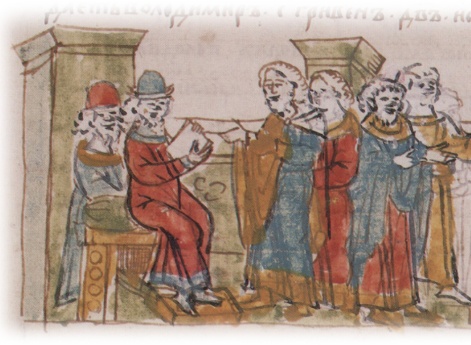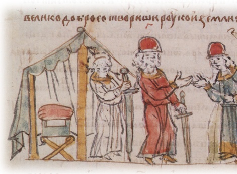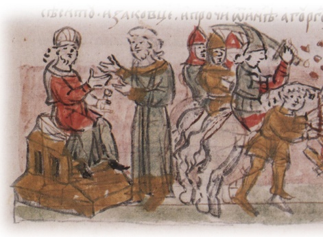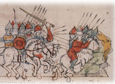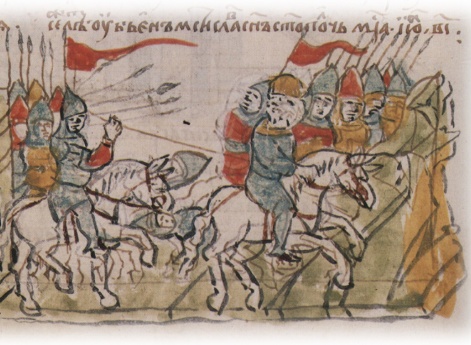Святополк (в крещении — Михаил) Изяславич, сын великого князя И. Ярославича и княгини Олисавы (Елизаветы (?); умерла в 1108 г.). По порядку престолонаследия — двенадцатый великий князь. Родился княжич в 1050 г., а по некоторым нелетописным данным, — 8 ноября; назван в честь архангела Михаила. В 1068 г. отец сажает его на княжение в Полоцк вместо умершего в мае брата Мстислава. В 1071 г., однако, изгнан из Полоцка князем Всеславом Брячиславичем. По всей вероятности, Святополк сопровождает отца во время его вынужденной поездки в Польшу и Германию в 1073–1077 гг. Зимой 1077–78 гг. после возвращения отца в Киев он вместе со своим двоюродным братом Владимиром Всеволодовичем Мономахом совершает поход в Полоцкую землю против князя Всеслава Брячиславича: князья сжигают Полоцк и разоряют еще несколько городов. В 1078 г. после гибели (30 мая) другого двоюродного брата, новгородского князя Глеба Святославича, Святополк занимает новгородский престол. Его новгородское княжение продолжается до 1088 г., когда князь по собственной воле переходит в Туров; в Великом Новгороде садится Давыд Святославич. В 1093 г., после смерти (13 апреля) своего дяди Всеволода Ярославича, Святополк, как старший в роду, получает киевский стол, от которого добровольно отказывается Владимир Мономах. Получив приглашение от Мономаха, Святополк приезжает из Турова в Киев 24 апреля, «и изидоша противу ему кияне с поклоном, и прияша и (его. — Д.В. Донской) с радостью; [и] сѣде на столѣ отца своего и строя своего». Тогда же в Киев являются послы от половцев, которые, узнав о смерти Всеволода, предлагают Святополку мир на прежних условиях, существовавших при Всеволоде. Святополк, не посоветовавшись со своей дружиной, но прислушавшись к совету тех, кто пришел с ним из Турова, приказывает схватить послов и заточить их. В ответ половцы начинают военные действия и осаждают Торческ. Святополк отпускает послов и соглашается на мир, но теперь половцы уже не хотят мира. По совету умудренных опытом («смысленных») мужей, Святополк обращается за помощью к Владимиру Мономаху. Тот является в Киев вместе со своим братом Ростиславом. Князья совещаются в Выдубецком Михайловском монастыре (на берегу Днепра в 1 версте ниже Киево-Печерского монастыря), причем с большим трудом и лишь под влиянием «смысленных мужей», приходят к единству. Владимир предлагает заключить мир с половцами, но Святополк настаивает на войне. Русское войско подступает к Треполю и останавливаются на берегу р. Стугны (правый приток Днепра). Здесь споры между князьями продолжаются. Вопреки совету Владимира, Святополк настаивает на переправе через р. Стугну, в то время полноводную. 26 мая у Треполя происходит сражение, которое заканчивается полным поражением русских. Дружина Святополка первой не выдерживает натиска половцев и бежит с поля боя. Вынужден бежать и князь Святополк, несмотря на то, что лично он, по утверждению летописца, проявил стойкость («стояше крепко»). Во время бегства в водах Стугны погибает князь Ростислав Всеволодович. Святополк же затворяется в Треполе, где пребывает до вечера, а ночью возвращается в Киев. Осажденные половцами жители Торческа обращаются к Святополку с мольбой о помощи. Святополк пытается передать им провизию, но тщетно. Тем не менее, осада Торческа продолжается 9 недель; часть половцев задерживается у города, а часть уст