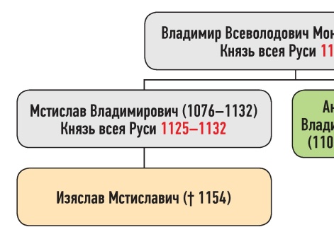 Генеалогическая схема к продолжению усобицы Мстиславичей и Владимировичей зимой 1135 г.