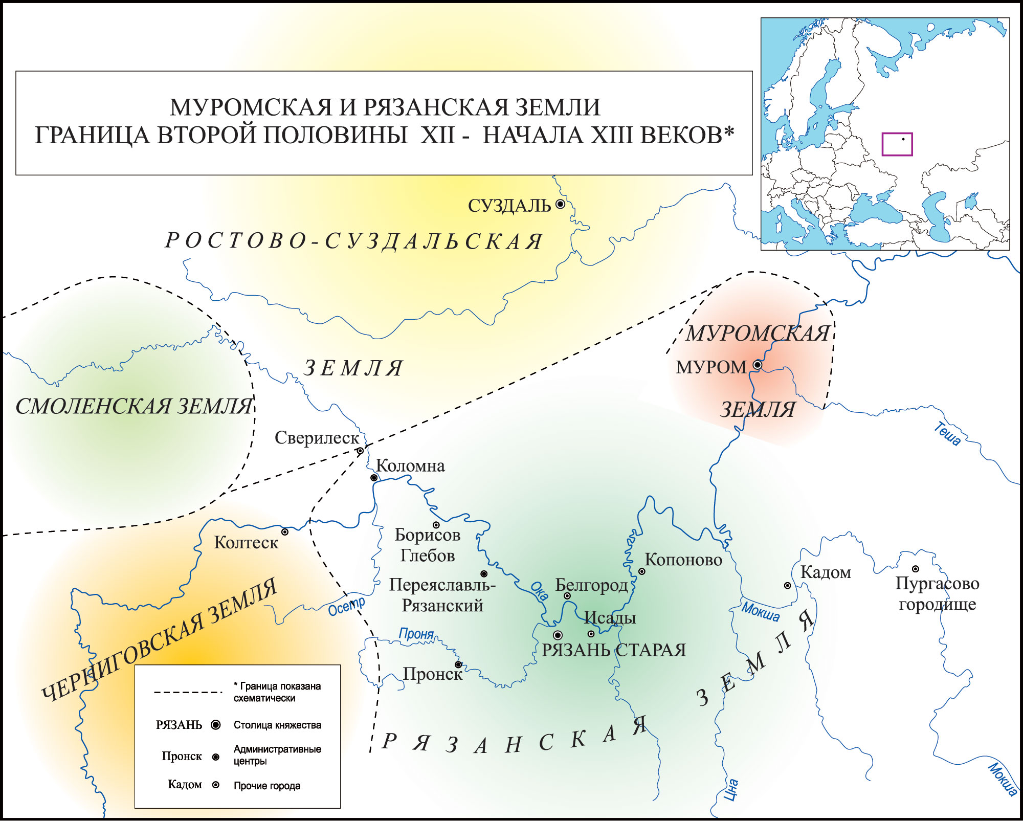 В первой половине XII века Муром и Рязань составляли единое владение под управлением Ярослава Святославича. После его смерти в 1129 году начался процесс раздела земель между его сыновьями Святославом и Ростиславом. К середине 1150-х годов наметилось окончательное политическое и внешнеполитическое расхождение Мурома и Рязани. Это проявилось в участии муромских полков в походах владимирских князей при отсутствии поддержки со стороны рязанских правителей. Если Рязань стремилась к самостоятельности, то Муром ориентировался на тесный союз с Северо-Восточной Русью.