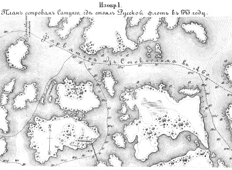 Полевые и временные укрепления. Изобр.1. План островам Сатунго, где стоял русский флот в 1743 году