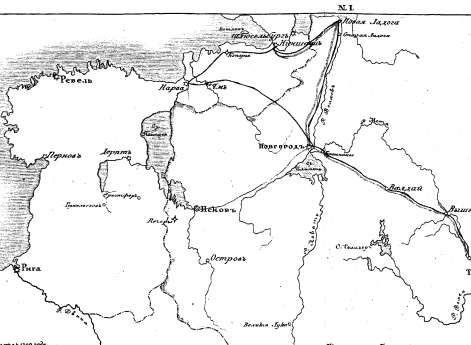 Карта походов 1700, 1703 и 1704 годов.