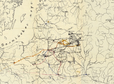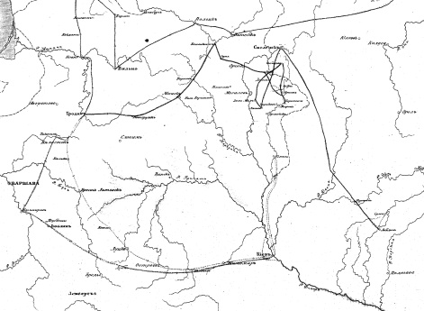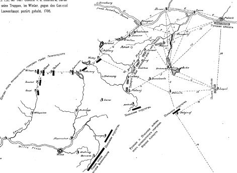 План расположения русских войск под начальством генерала от инфантерии барона Алларта, во время движения генерала Левенгаунта в пределы России зимой 1706 года. (Военный Ученый Архив Главного Штаба, отд.II, №54) (С чертежа Н.Волынского)