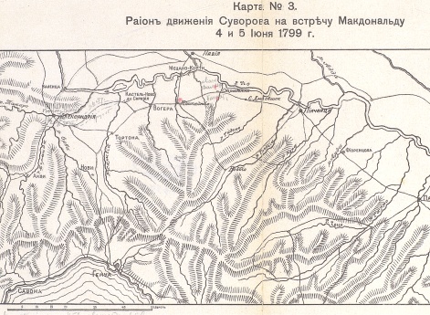 Карта 3. Район движения Суворова на встречу Макдональду 4 и 5 июня 1799 г