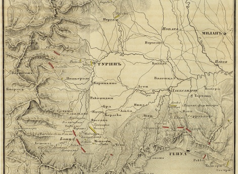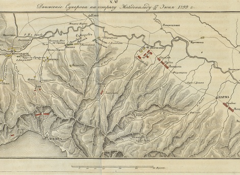 Схема к Итальянскому походу. Путь действий Суворова