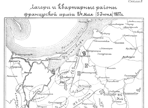 Лагеря и квартирные районы французской армии 24 мая (5 июня) 1807