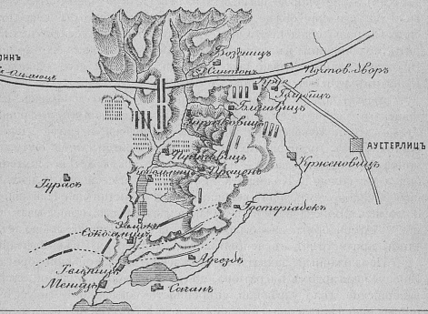Русско-австрийская армия совершала наступательный марш-маневр на Брюнн, но под Аустерлицем Наполеон нанес ей неожиданный удар, разрезав надвое и разбив войска центра и левого крыла.